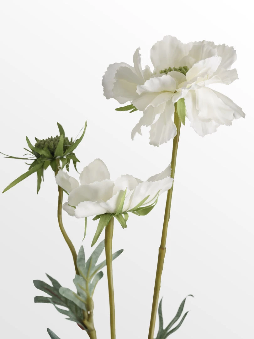 Our artificial white chervil spray has three perfectly formed white flowers at varying stages of bloom with a vibrant green centre and cucumber green leaves, and is a favourite addition to our meadow flower collection.