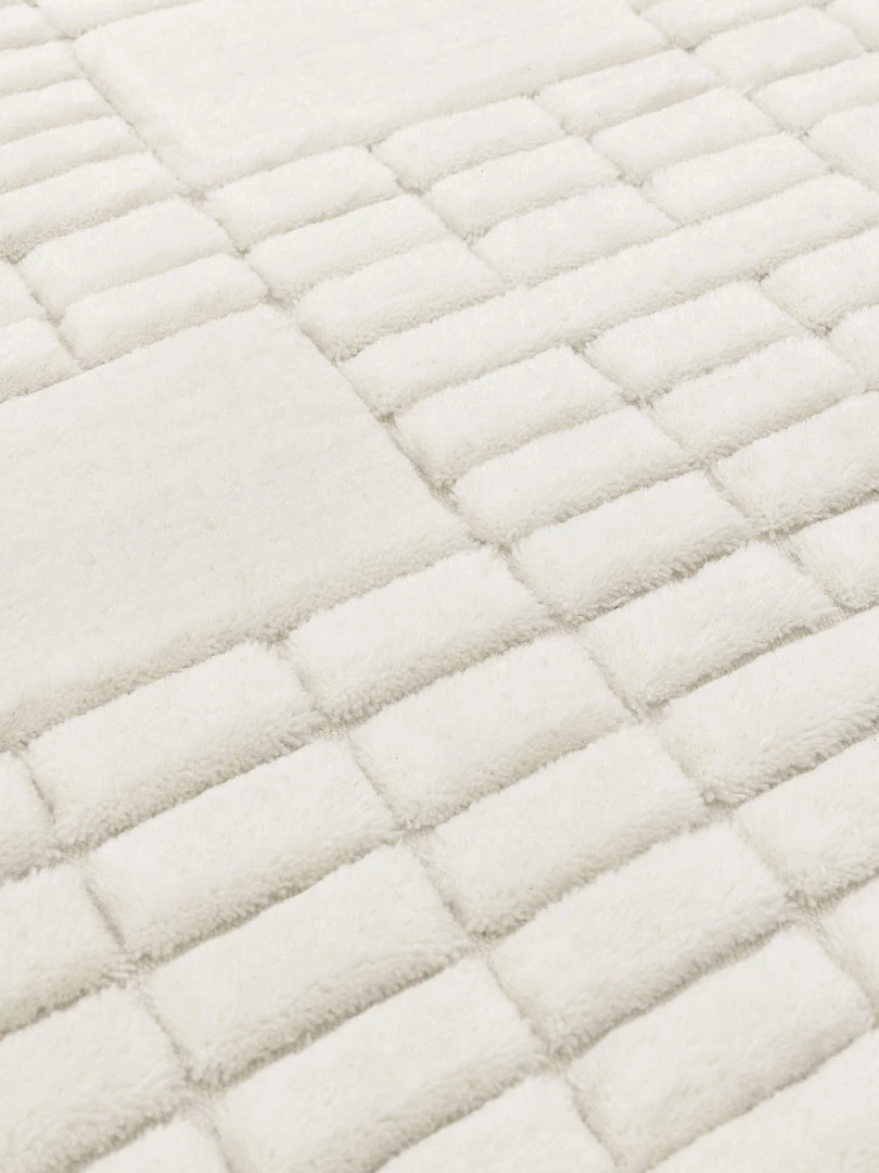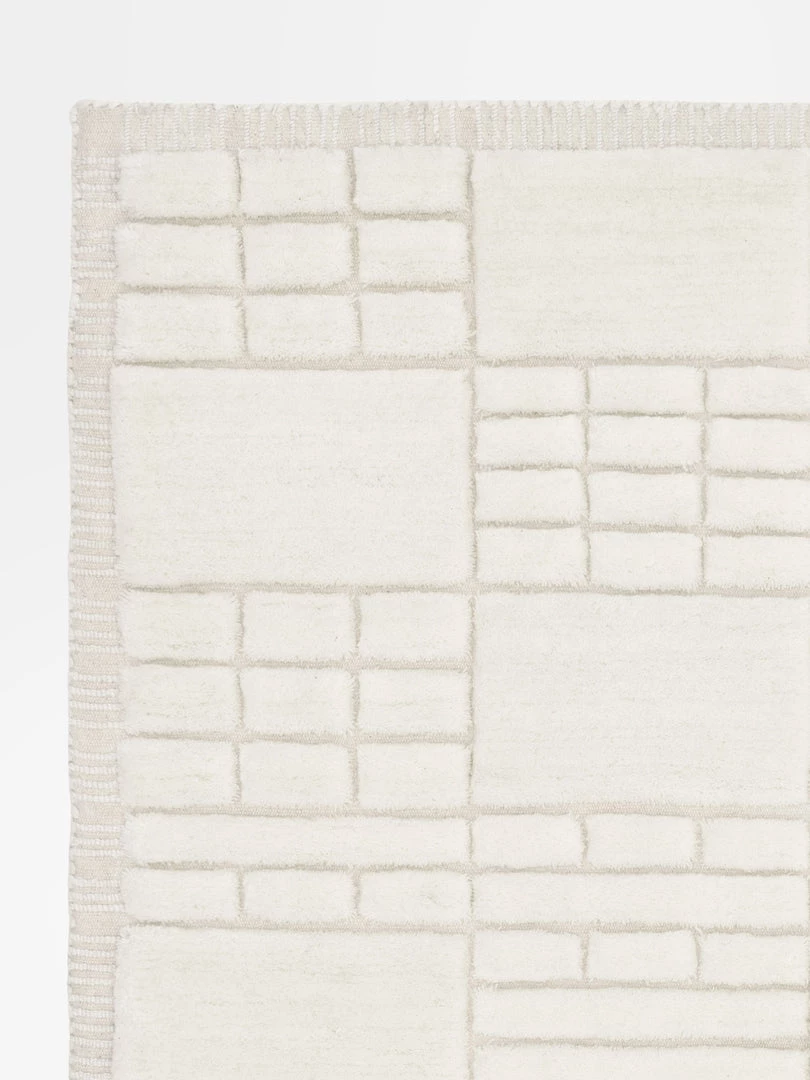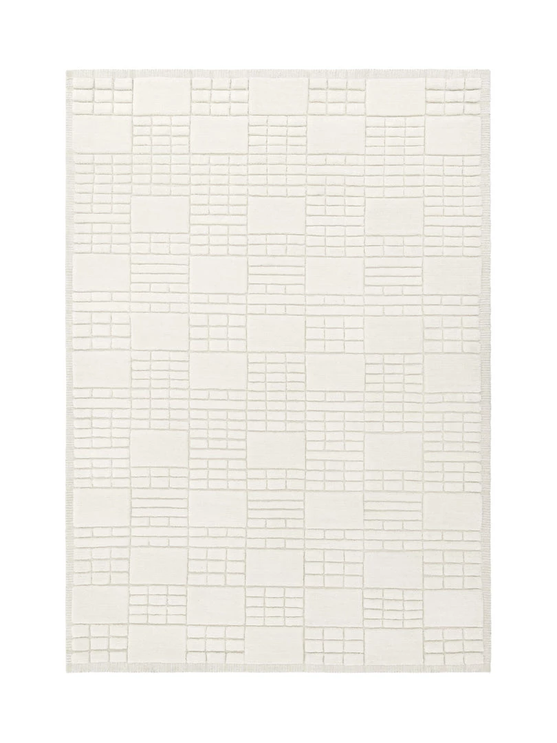 Hand tufted from 100% New Zealand wool, the contemporary grid like design and high low pile of the Eugene is a sophisticated neutral rug.