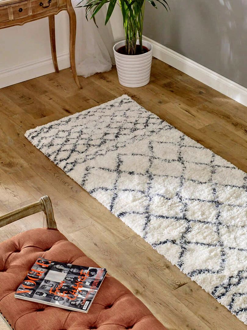 A new take on traditional Moroccan berber styles, the Albos rugs are crafted with a deep, textured pile that’s both sumptuously soft and highly durable.Â
