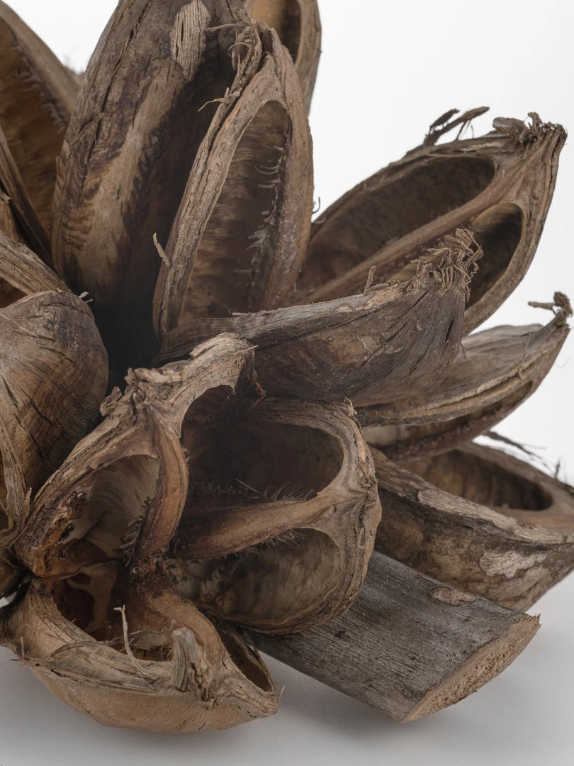 These amazing dried fruits are actually derived from the Strelitzia family. These are the dried fruit rather than the flower and once they gradually open to reveal the seeds they become hard and dry like a flower.  Fabulous natural ornament to add interest and depth to your decor.Â