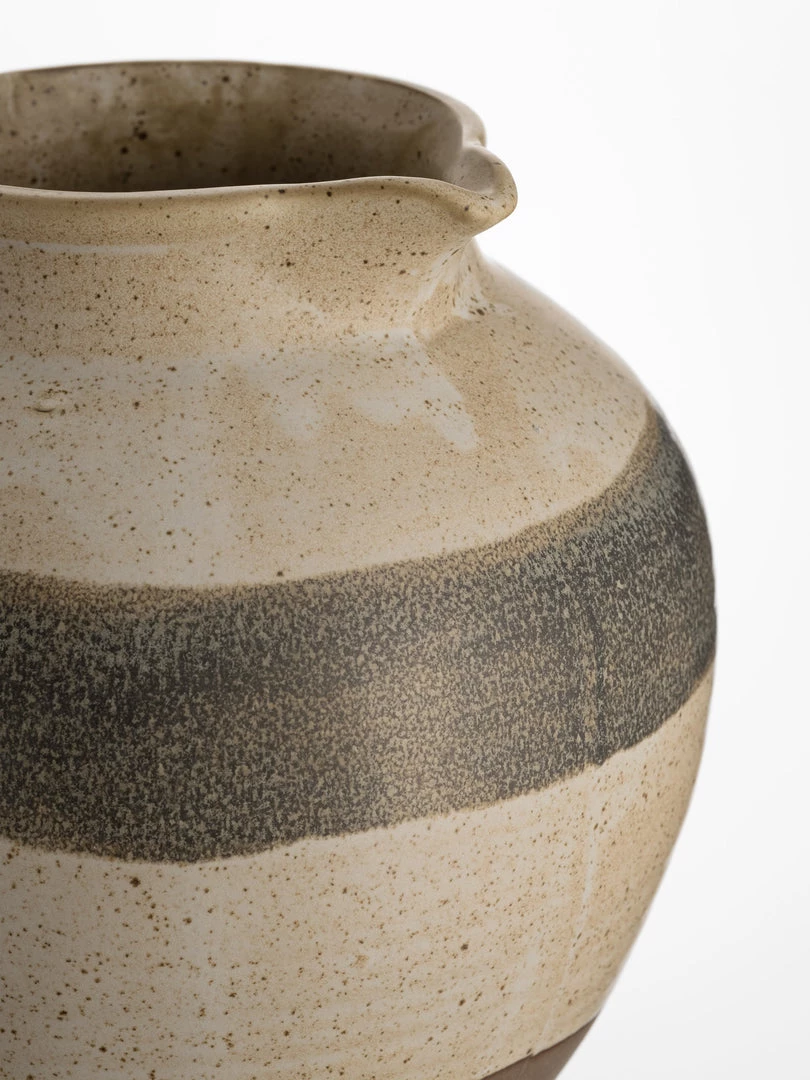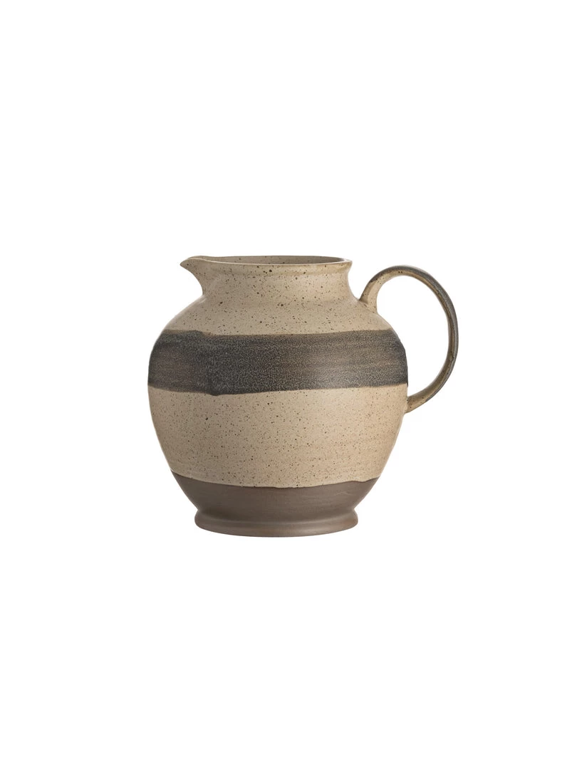 Handcrafted and hand-glazed stoneware jug is perfect for anyone who wants something special in their kitchen. The natural stoneware design with artistic stripe is sure to impress, and the jug is functional too – perfect for pouring yourself a cold drink or serving guests.