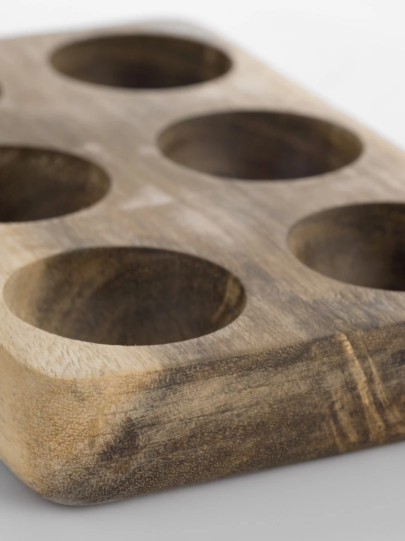 Made from acacia wood this egg holder is warm in tones and textures.