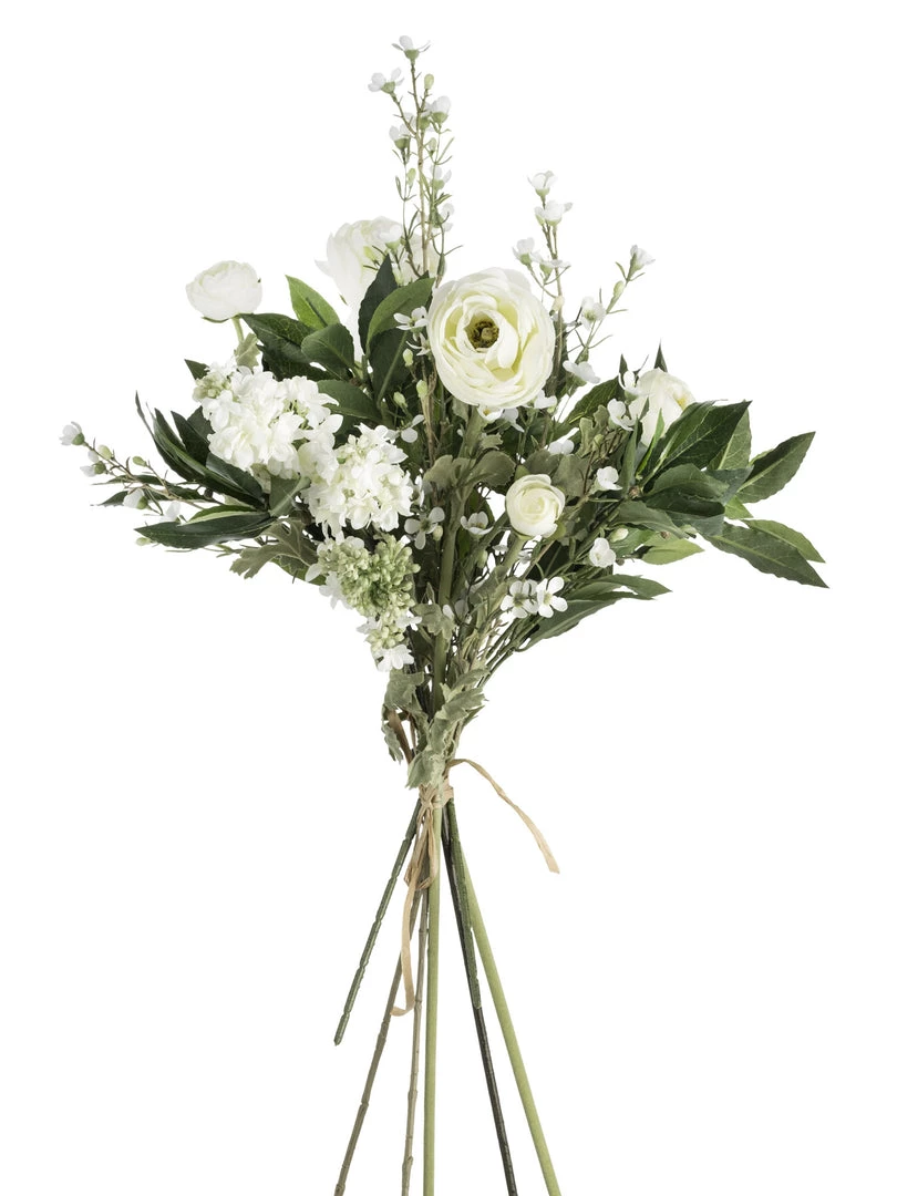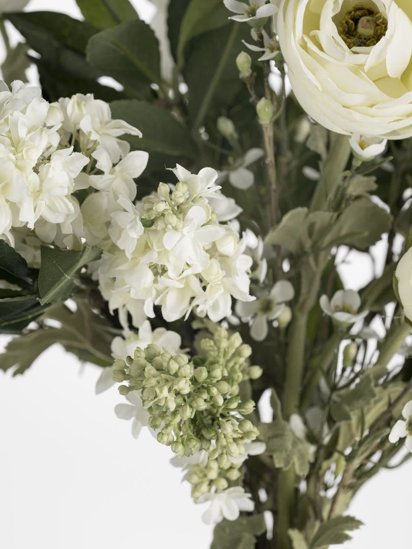 The essential summer arrangement, Mediterranean inspired with dusty green olive stems mixed in with a selection of beautiful white blooms and wax flowers. A summer arrangement that will last.