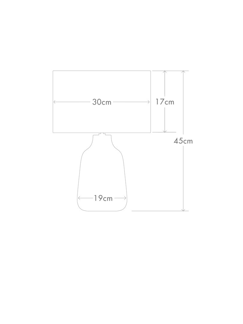 Topped with a white hand loomed shade from India.