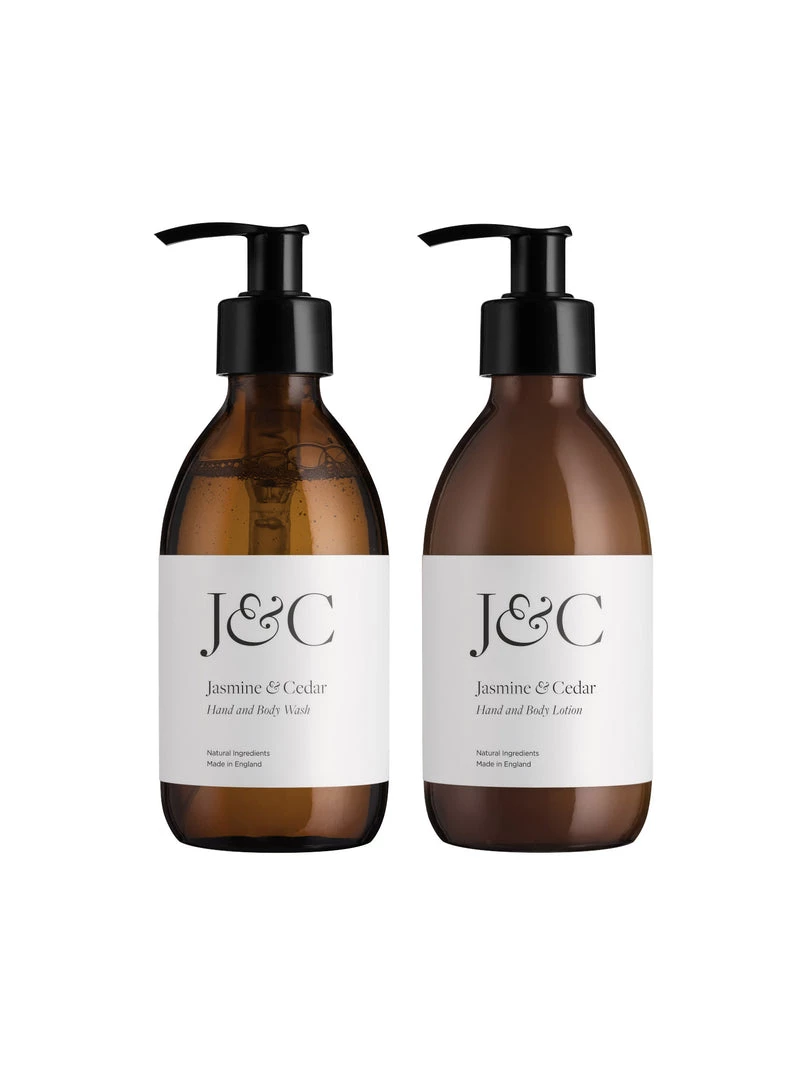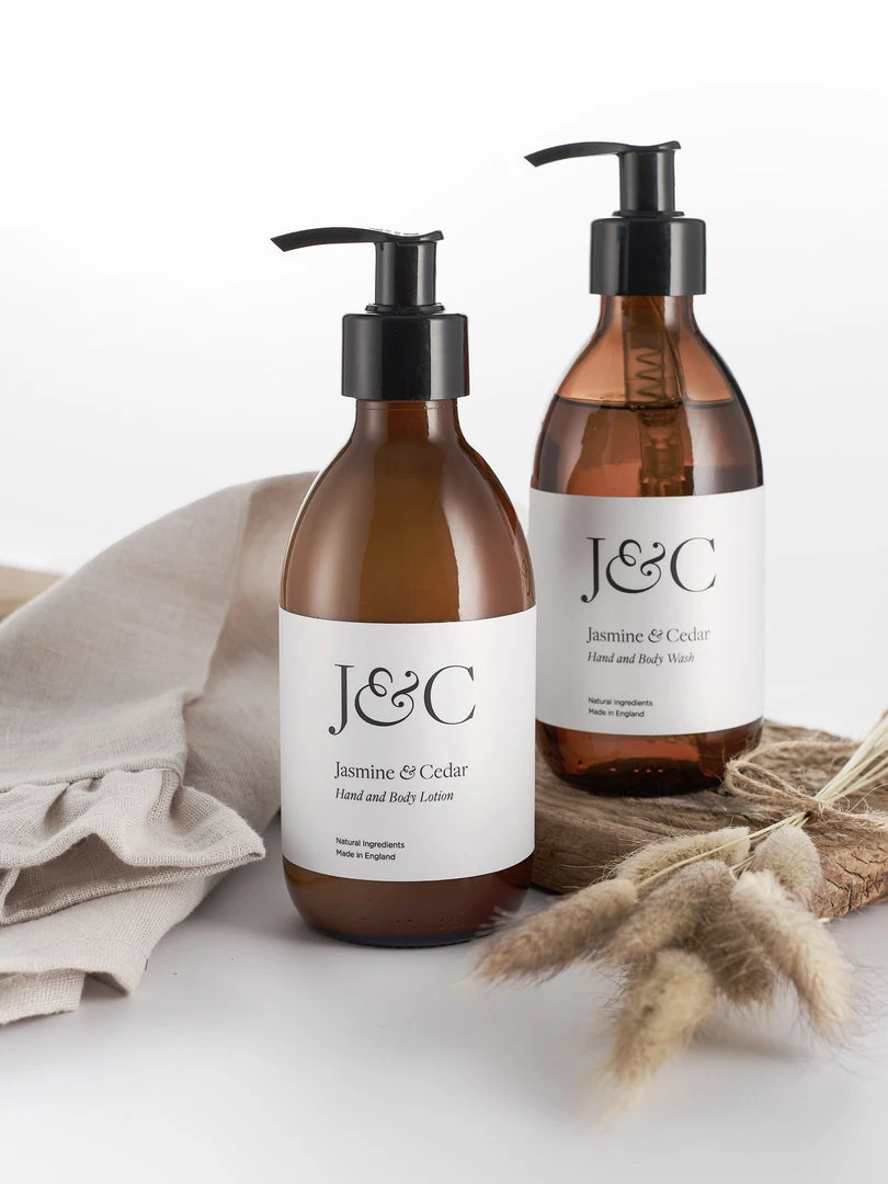 Our sensual Jasmine and Cedar hand and body wash, with woody undertones of cedar and smoke patchouli.
