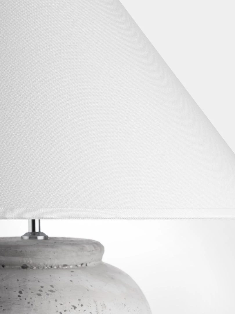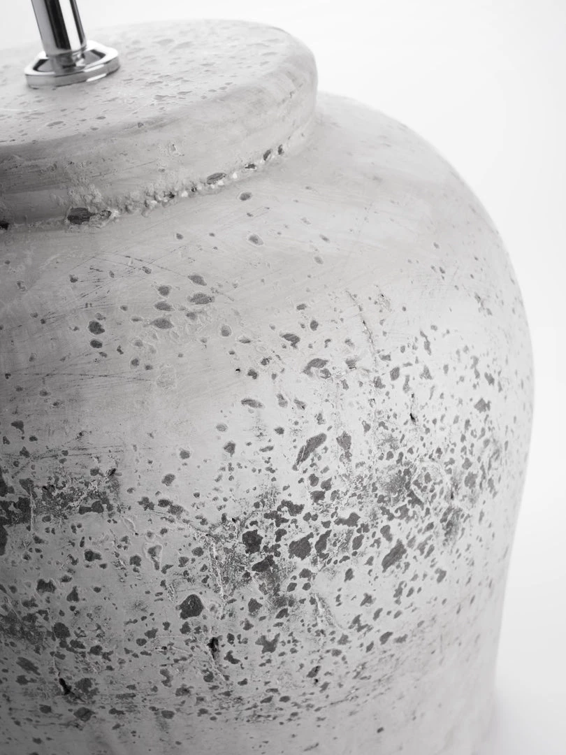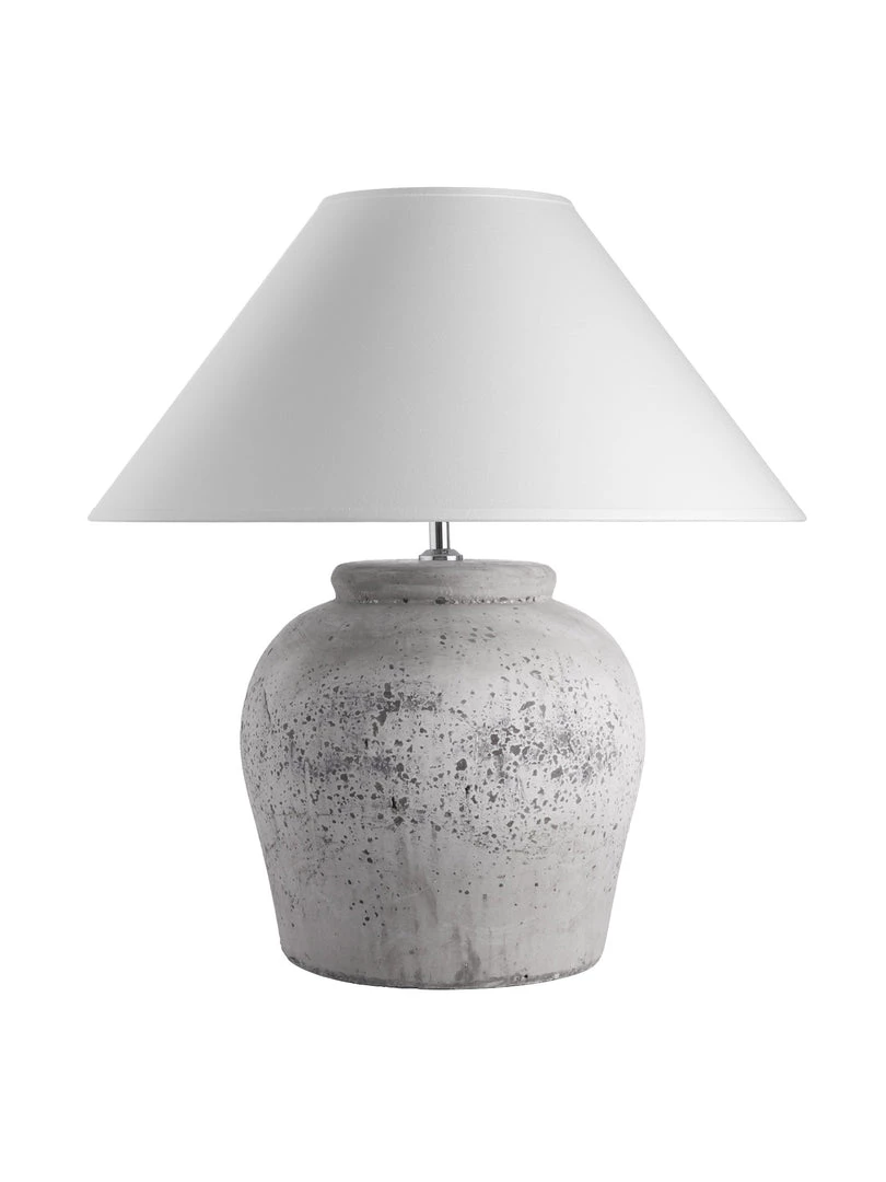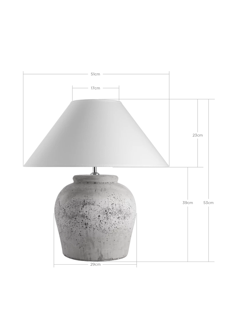 Made from terracotta with a stunning cement finish, subtle white and cream tones brings a soft texture to any room, each lamp is hand finished so finish will differ from base to base.