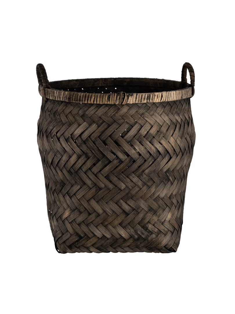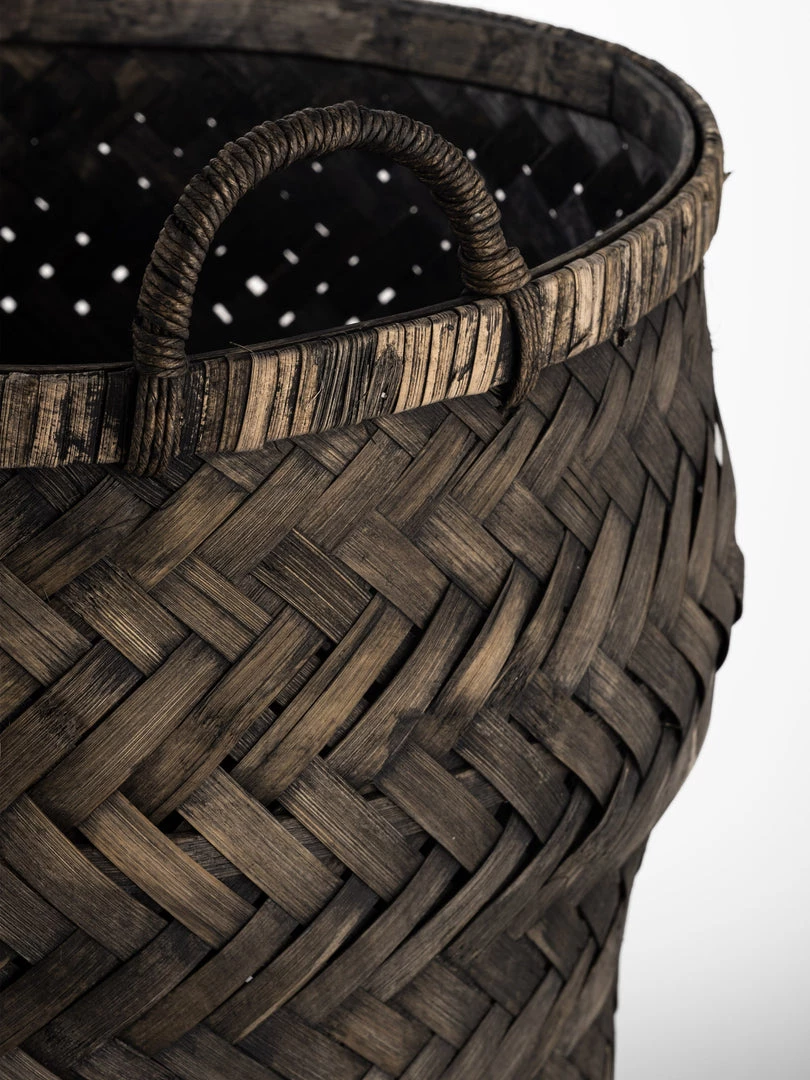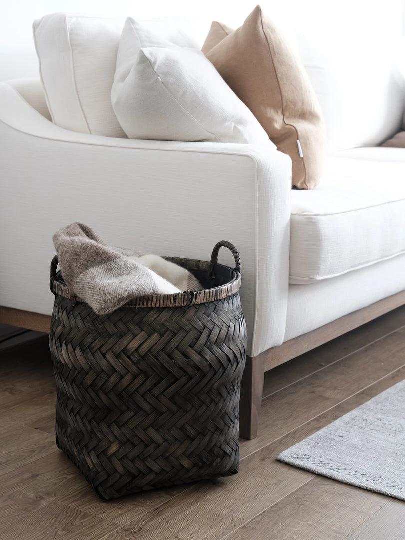 Traditional made bamboo basket in shades of black and brown, giving lots of natural contrast to your room. Perfect for storing throws.