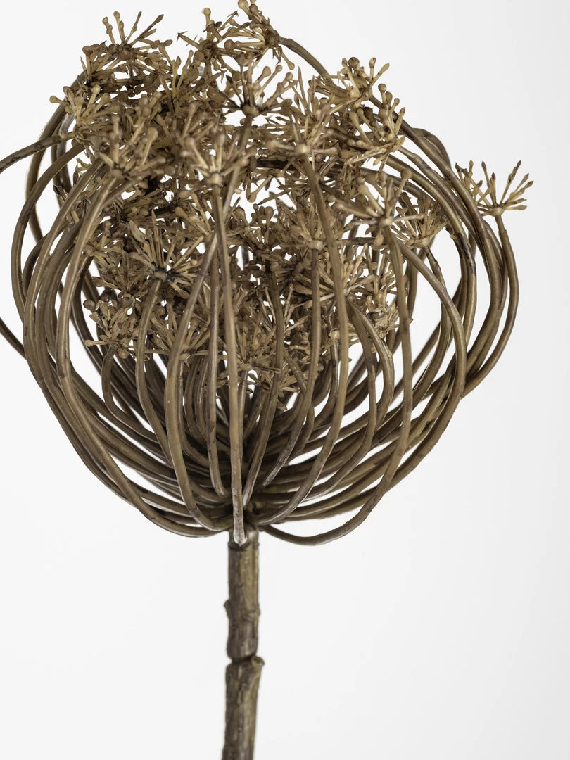 Incredibly realistic faux dried cow parsley stem. Long and sculptural, these are have all the beauty of the cows parsley but will stand the test time. Mix in with the open cow parsley for a true Autumnal look.