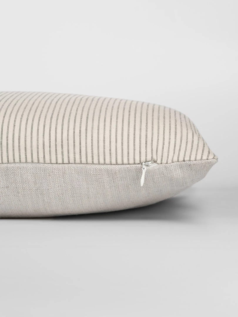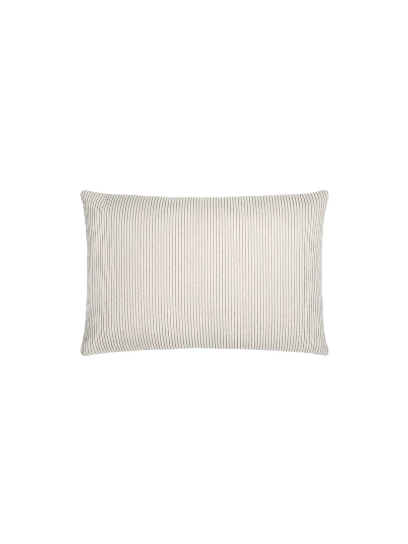 Ticking stripe lumbar cushion, black stripes on a cream background. These small lumbar cushions are a great way of layering your cushions to add dimension and patterns.
