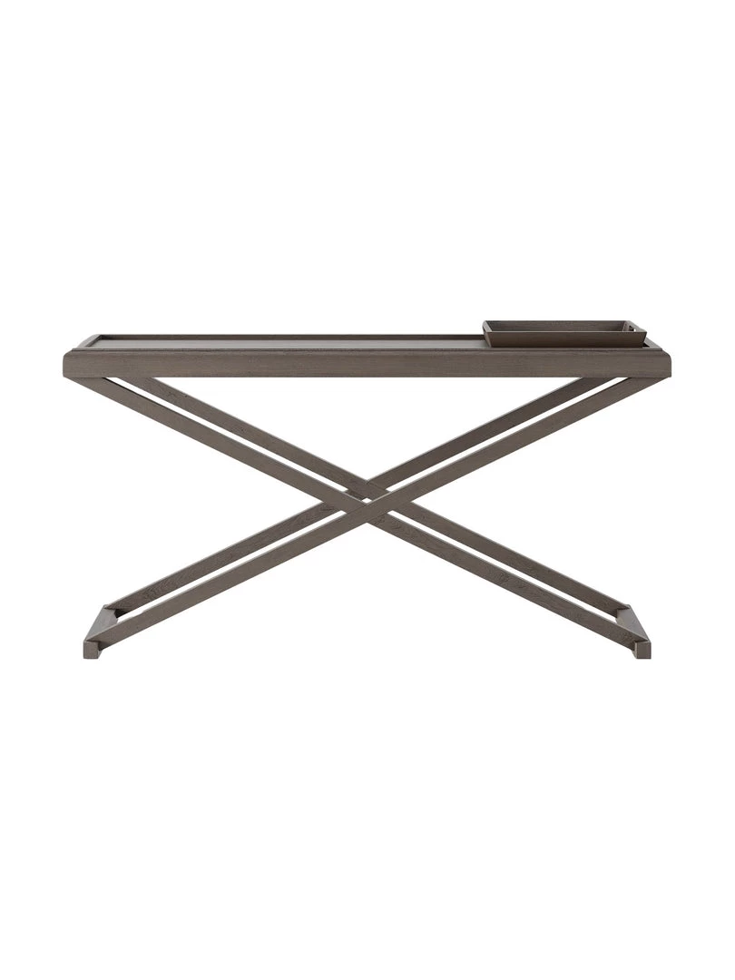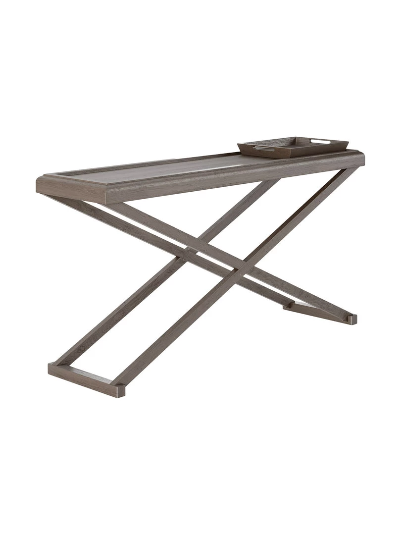 This sleek and stylish console table is perfect for any modern home. The beautiful grey aged oak and oak veneer give it a contemporary look, while the crossed legs add a touch of elegance. And with 1 removable tray, it’s easy to store your belongings.