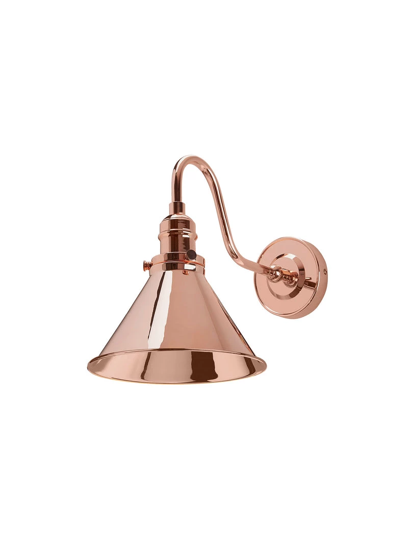 This beautiful crafted wall light is polished copper with a delicate swan neck, each has a ball joint at the neck to ensure correct positioning and direction.