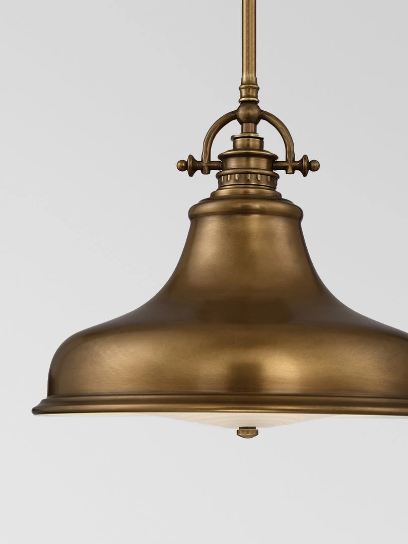 These classic Americana metal pendants add a nostalgic flair to any kitchen island or dinner table. Finley is available in Silver, Bronze and Weathered Brass finishes. The medium pendant and isle light include prismatic lens diffusers for a soft, even light.