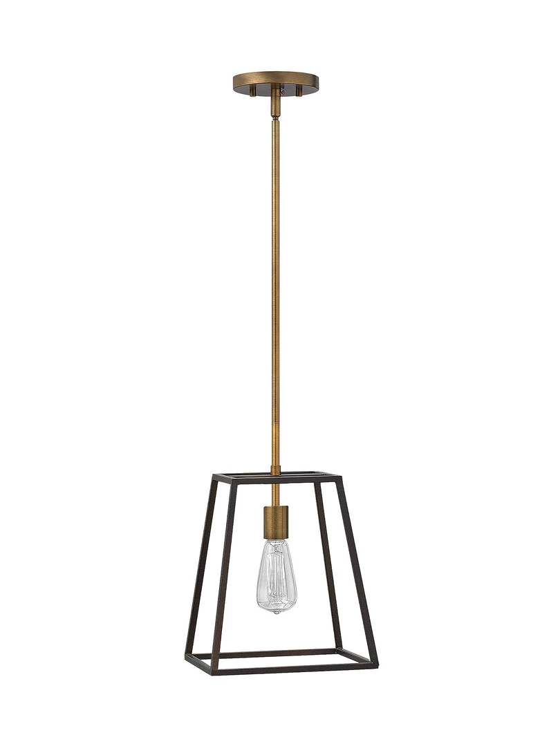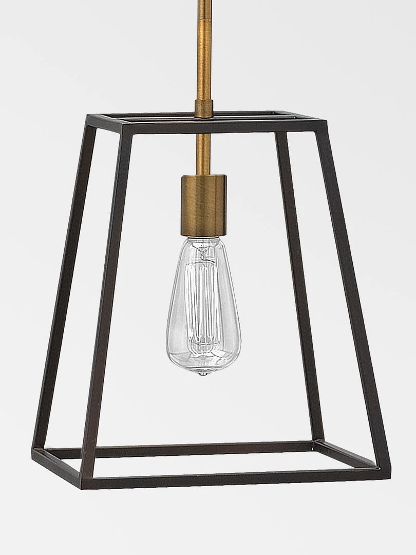 A tapered square metal frame in a warm black bronze finish, gives a vintage industrial aesthetic using two contrasting tones of material. Without glass.