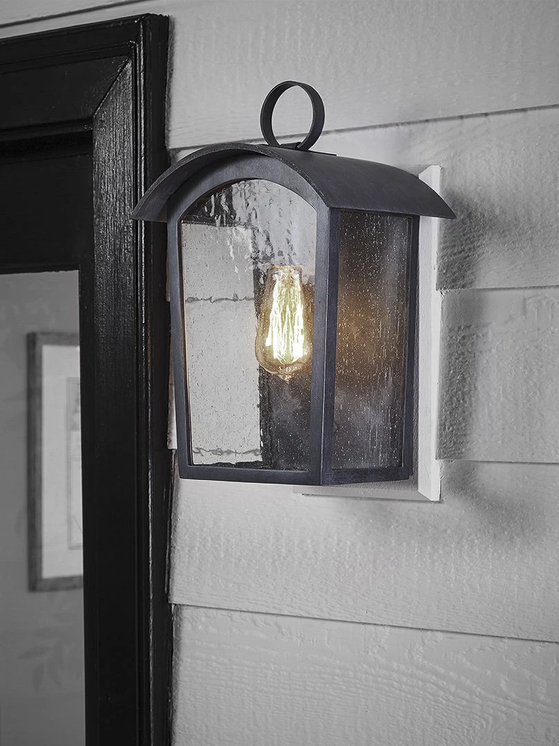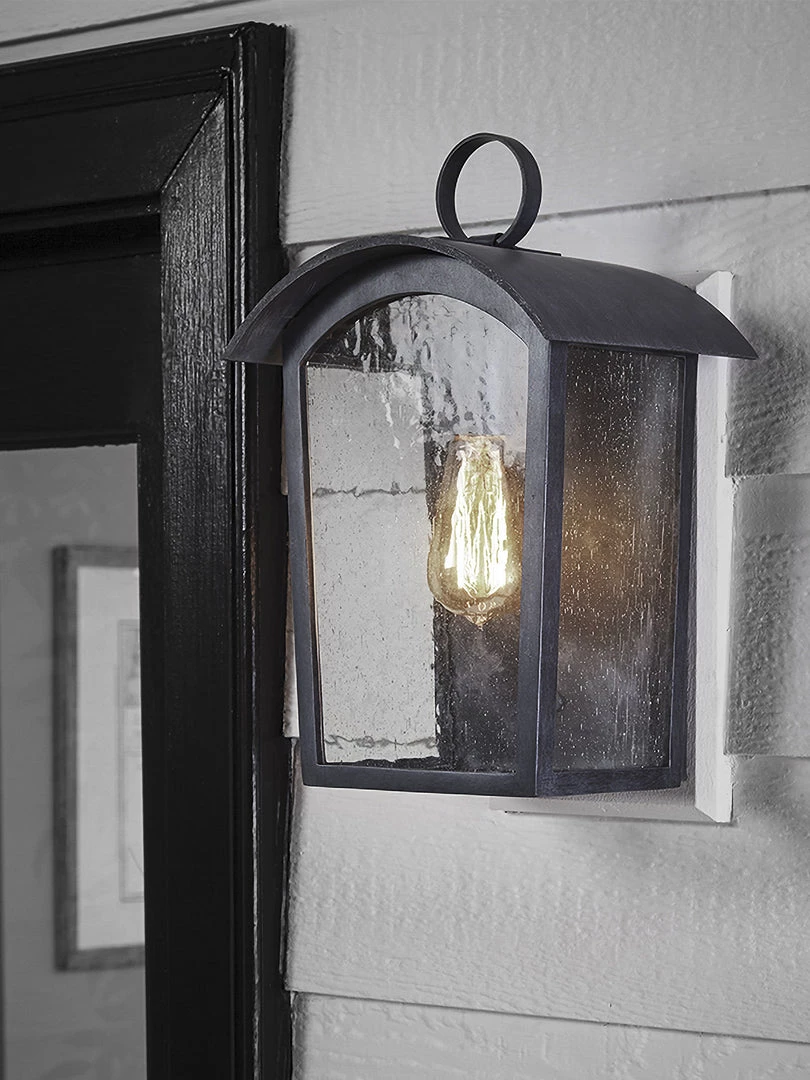 Great craftsmanship and technique is applied to bend the metal roofline and to create the loop at the crown. An Ash Black finish combined with Clear Seeded glass panels provides a warm welcome.
