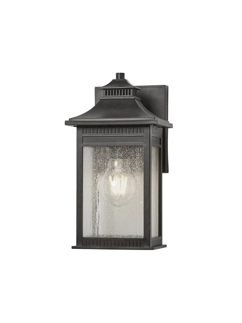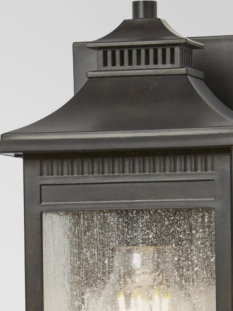 The Stanley outdoor wall light with a clear seedy glass complements the rich Imperial Bronze finish. Made of a unique composite material this outdoor collection is guaranteed to withstand the harshest of elements