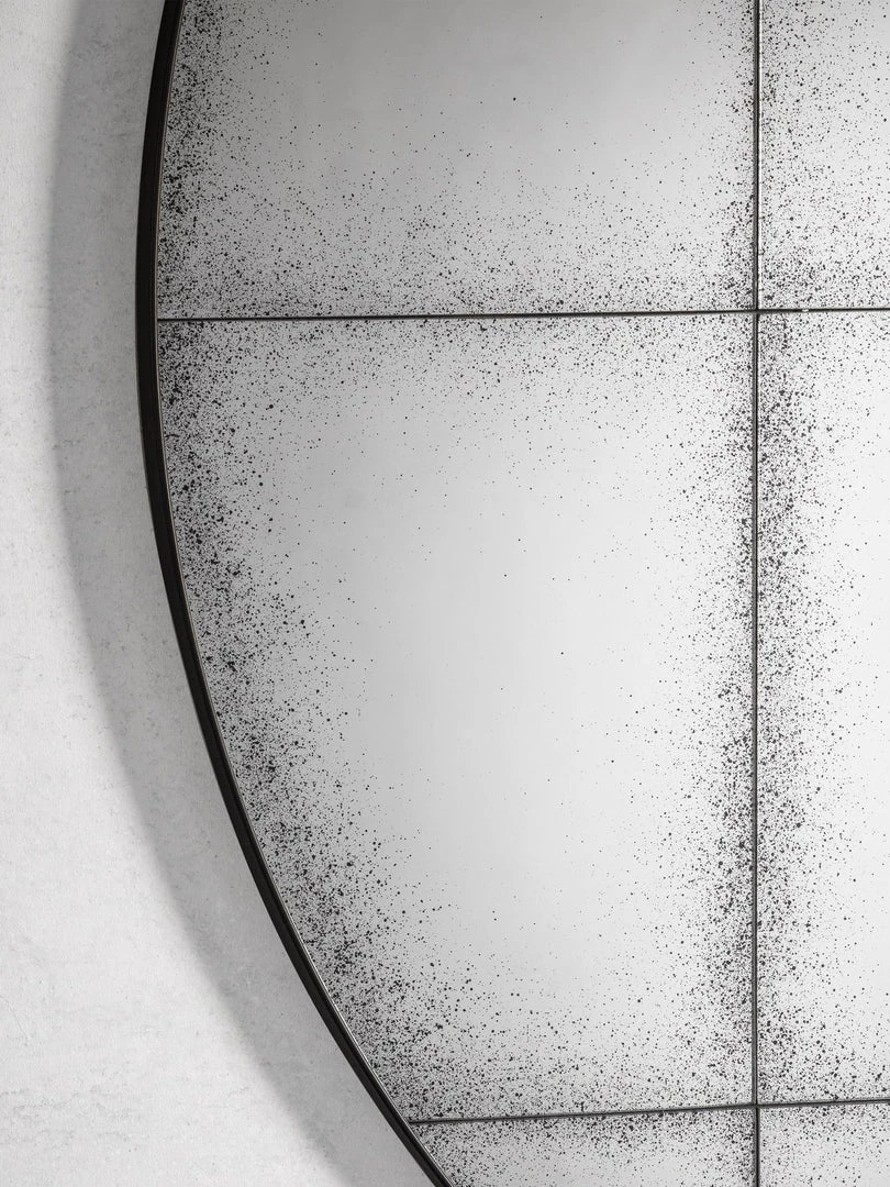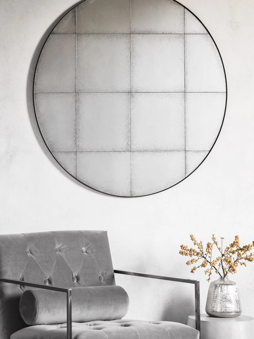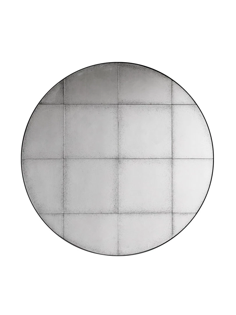 Stunning grid mirror with a dark grey metal surround with aged patina mirror tiles.