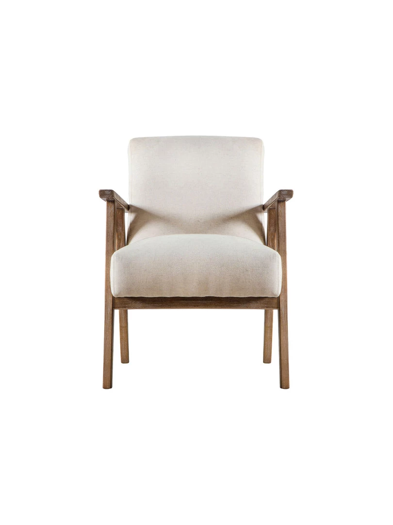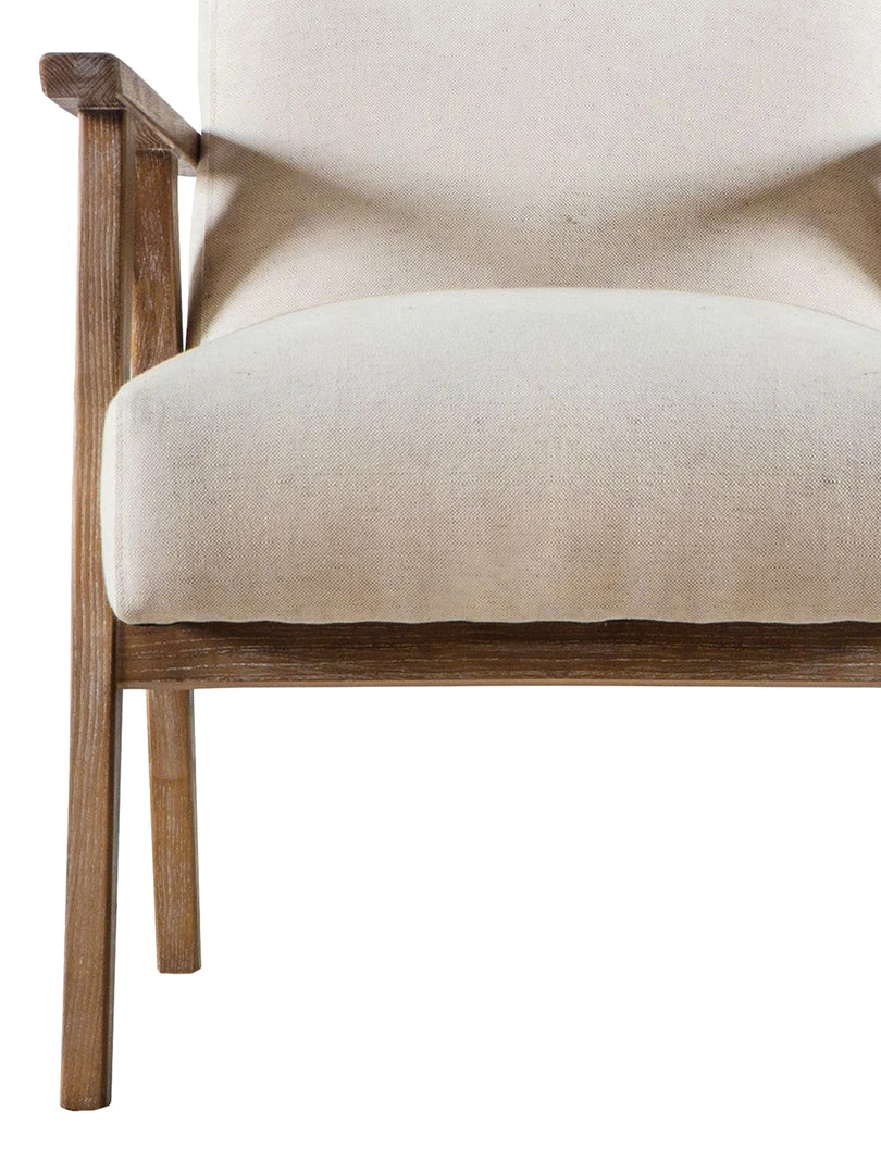 Classic Mid-Century inspired arm chair finished in a beautifully soft natural Linen. This piece has a comfortable and relaxed feel, perfect for any neutral living space.