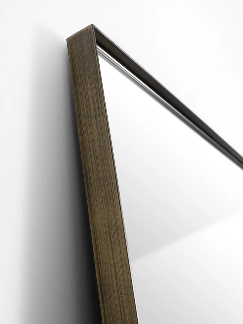 Brushed bronze classic square mirror. A heavy mirror, two metal hooks on the frame to hang.