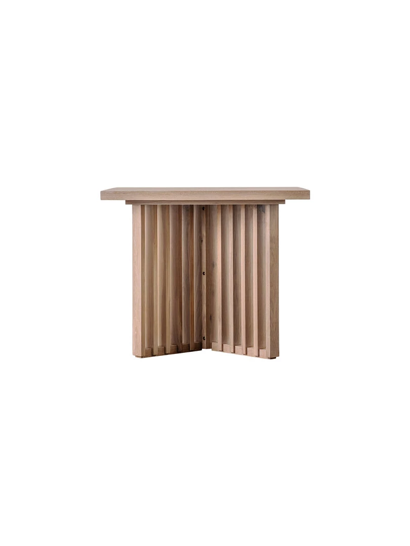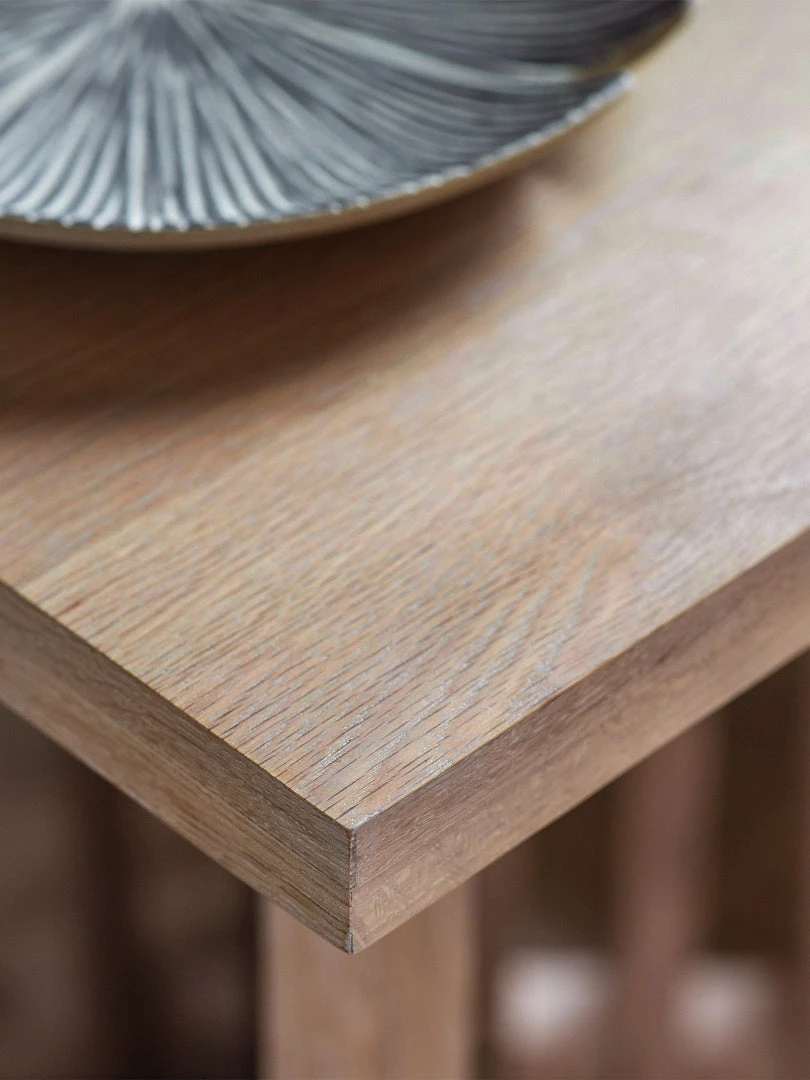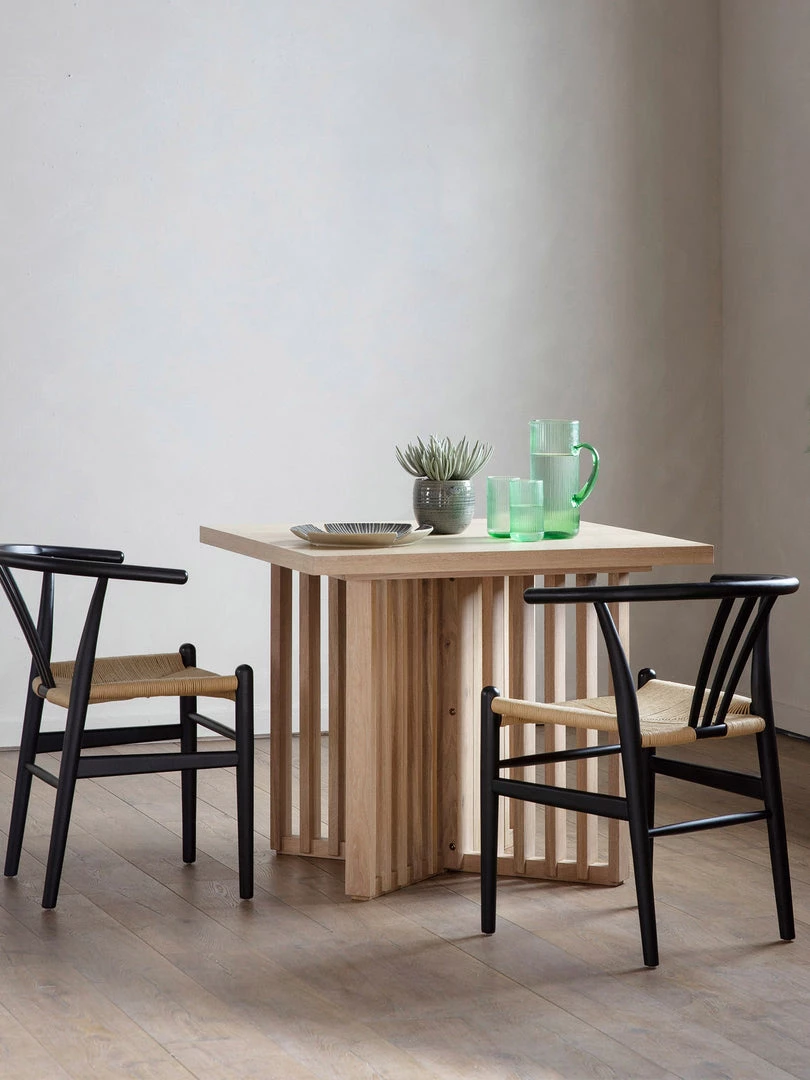 The Okayama Dining Table features solid oak slatted legs in a double chevron layout, to create an eye-catching and unusual design feature.