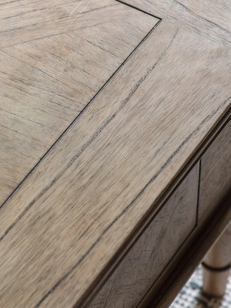 The Savanne collection is made from Mindy wood, a natural, coastal, and weathered look of the beach veranda which has been open to the elements. Inspired by French Colonial furniture it also suits most contemporary styles. The lightly brushed finish is inlaid with a parquet vaneer.