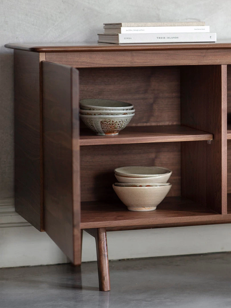 An elegant sideboard with three drawers and twin doors. Fresh clean lines with an uncomplicated design inspired by mid century furniture.