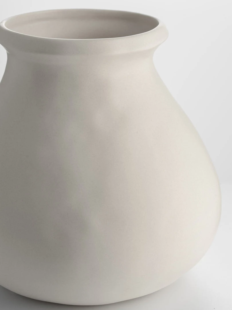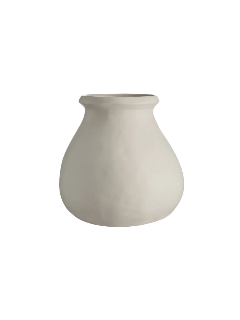 The Loma vase has an unusual organic feel in an off-white cream. Its soft shape is enhanced with a small lip at the top. Glazed inside so suitable for fresh flowers.
