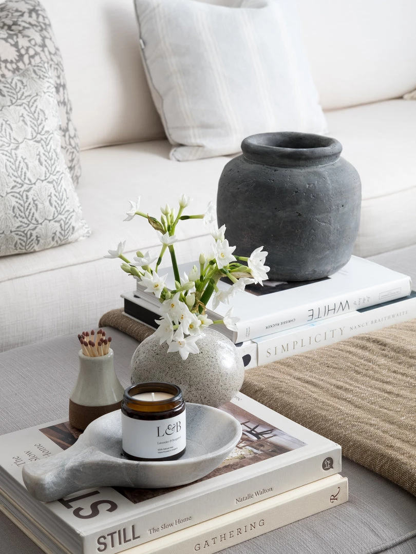 This stunning Jinxia Vase is handmade from clay and finished with a rustic concrete look. It’s perfect for adding a touch of life and warmth to your home, and is a beautiful contrast to traditional ceramic and porcelain items.