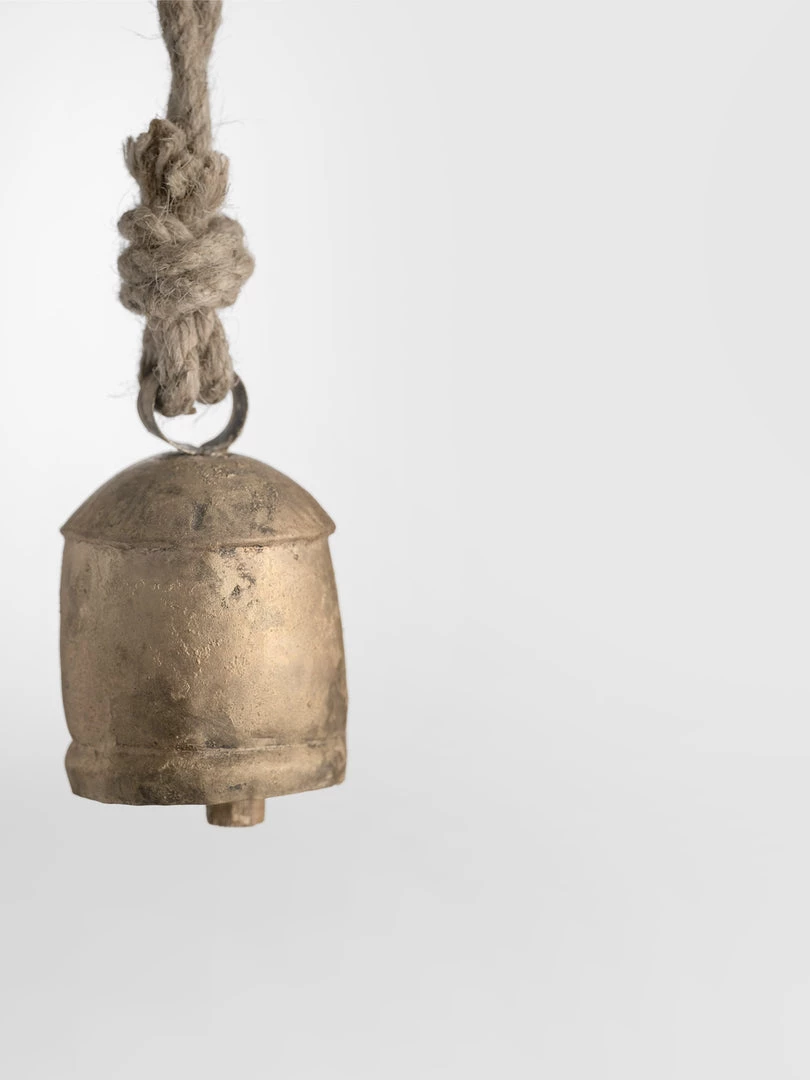 Made in India to traditional methods, these rustic cow bells are as quirky addition to your decor in a muted gold. Year round charm.