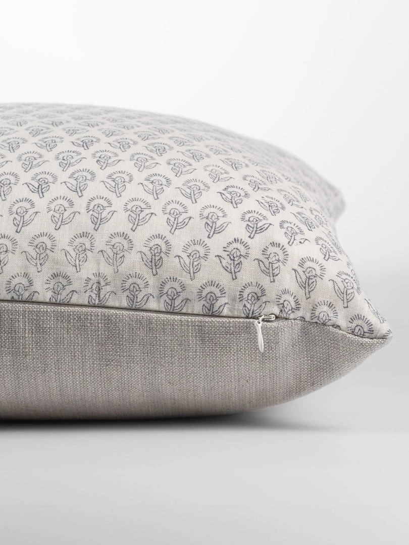 Juno Indigo cushion is hand block printed in India, small blue flowers with a plain linen back and invisible zipper, mix in with plains and stripes for a laid back, stylish look. Add comfort to any room with this beautiful floral cushion.