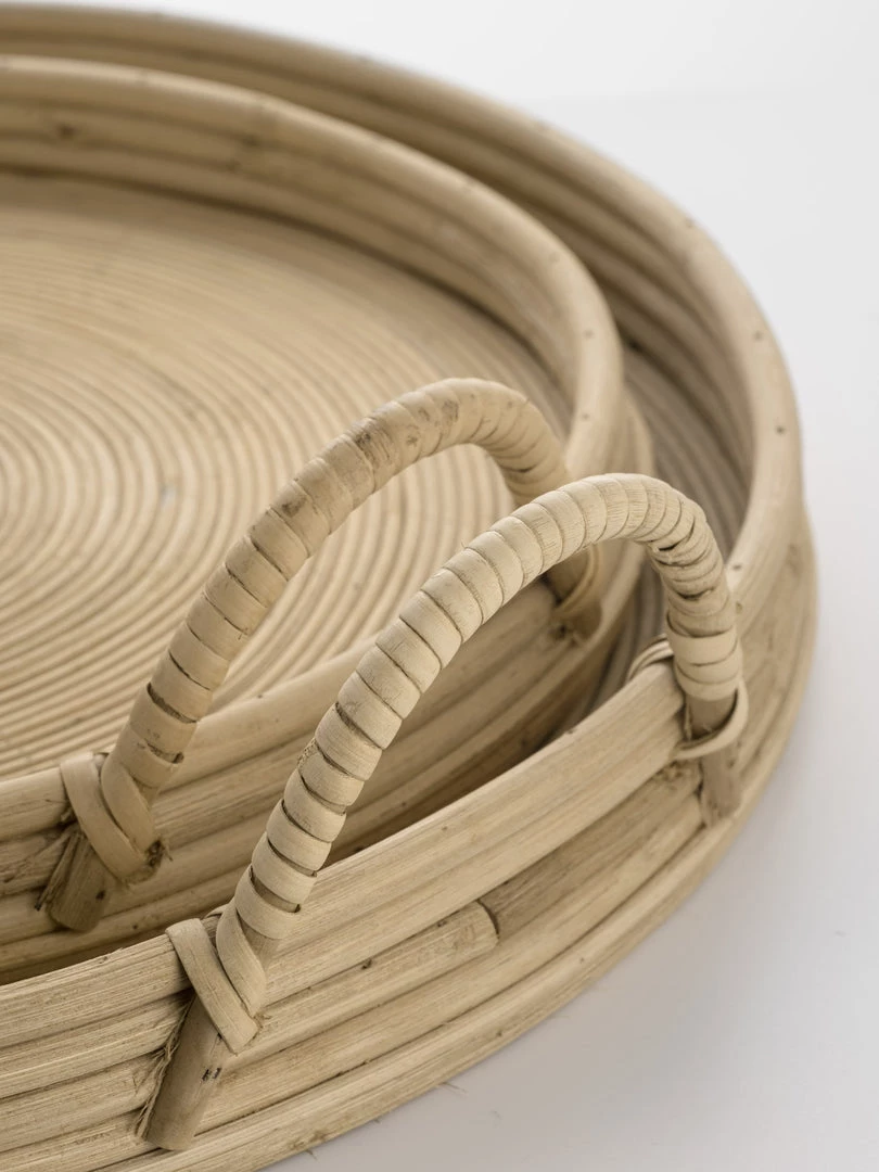 Tactile yet practical, these hand braided rattan trays are a coffee table must.