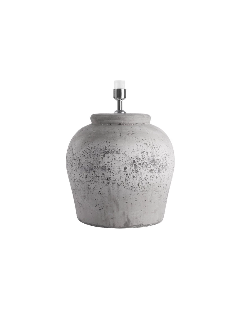 Made from terracotta with a stunning cement finish, subtle white and cream tones brings a soft texture to any room, each lamp is hand finished so finish will differ from base to base. Swivel lamp holder for perfect lamp alignment.