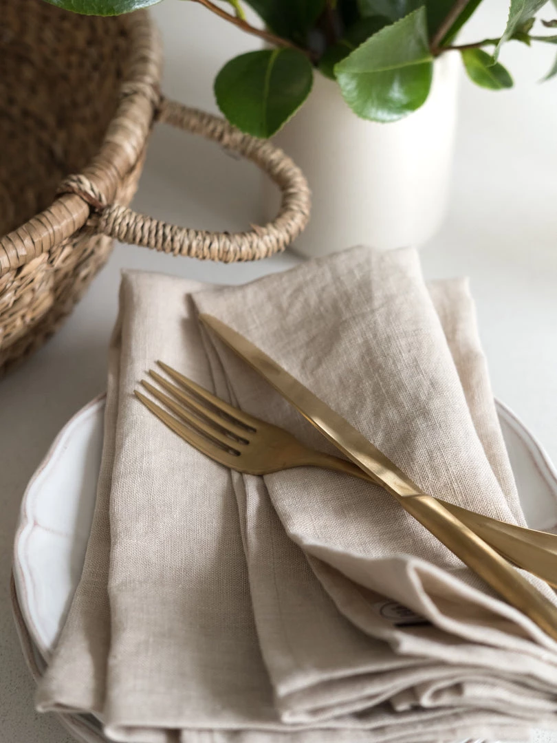 Made from 100% linen in Europe, these beautifully soft natural linen napkins are warm and inviting giving a formal yet inviting feel to your table.