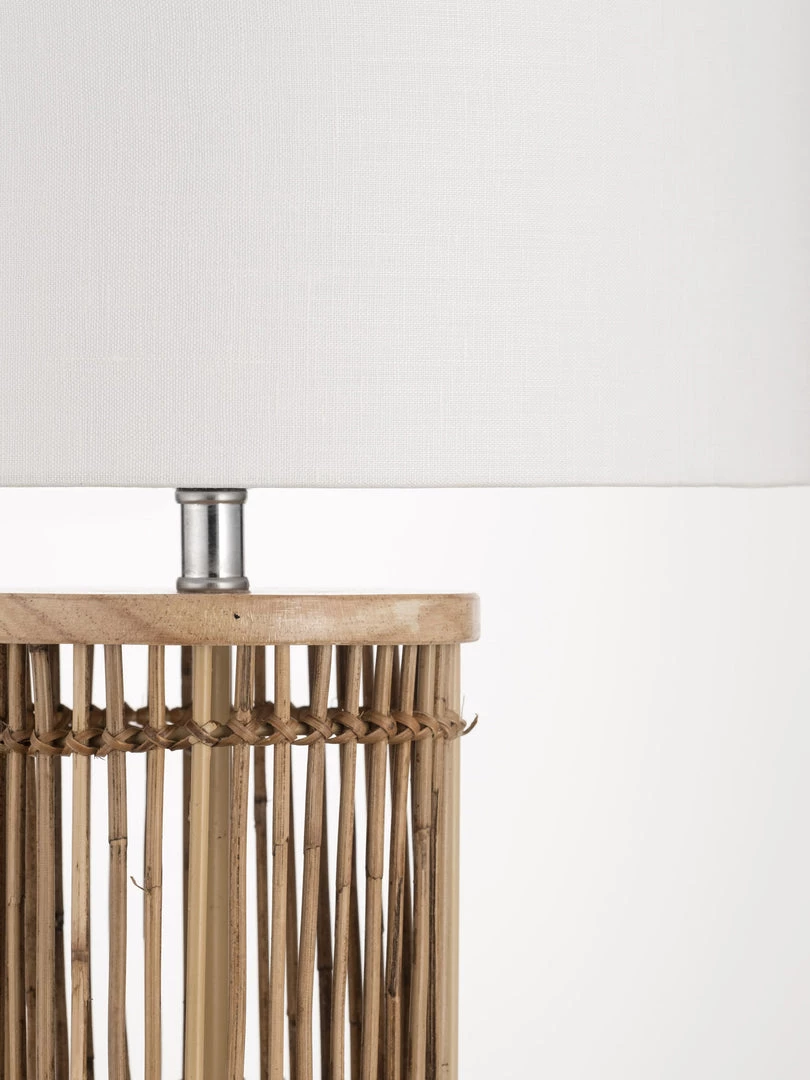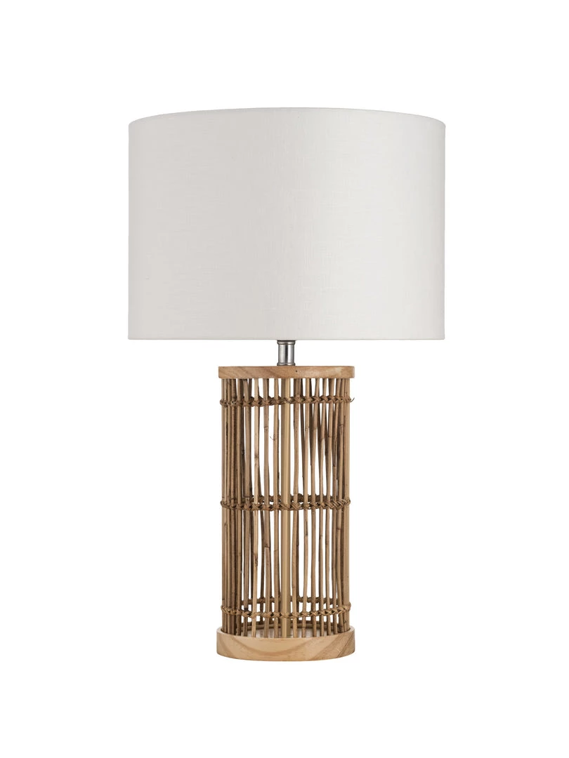 The rustic charm is paired with a structured style which work beautifully together. Finished with a white jute shade to complete the look.