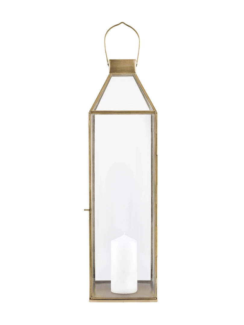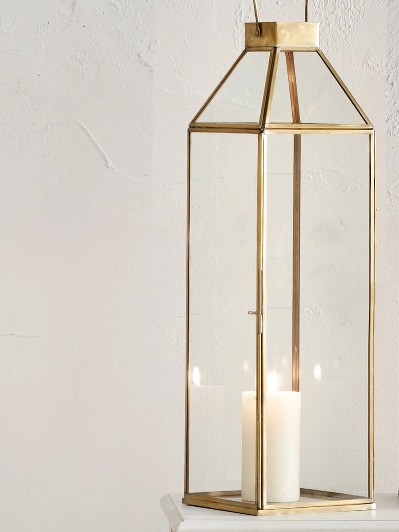 Shiny brass metal and clear glass square lantern. From special occasions to cosy evenings in, this lantern will add a welcoming atmospheric cosy glow to your room. Why not couple with our square and taller version or our black brass options to complete the look.