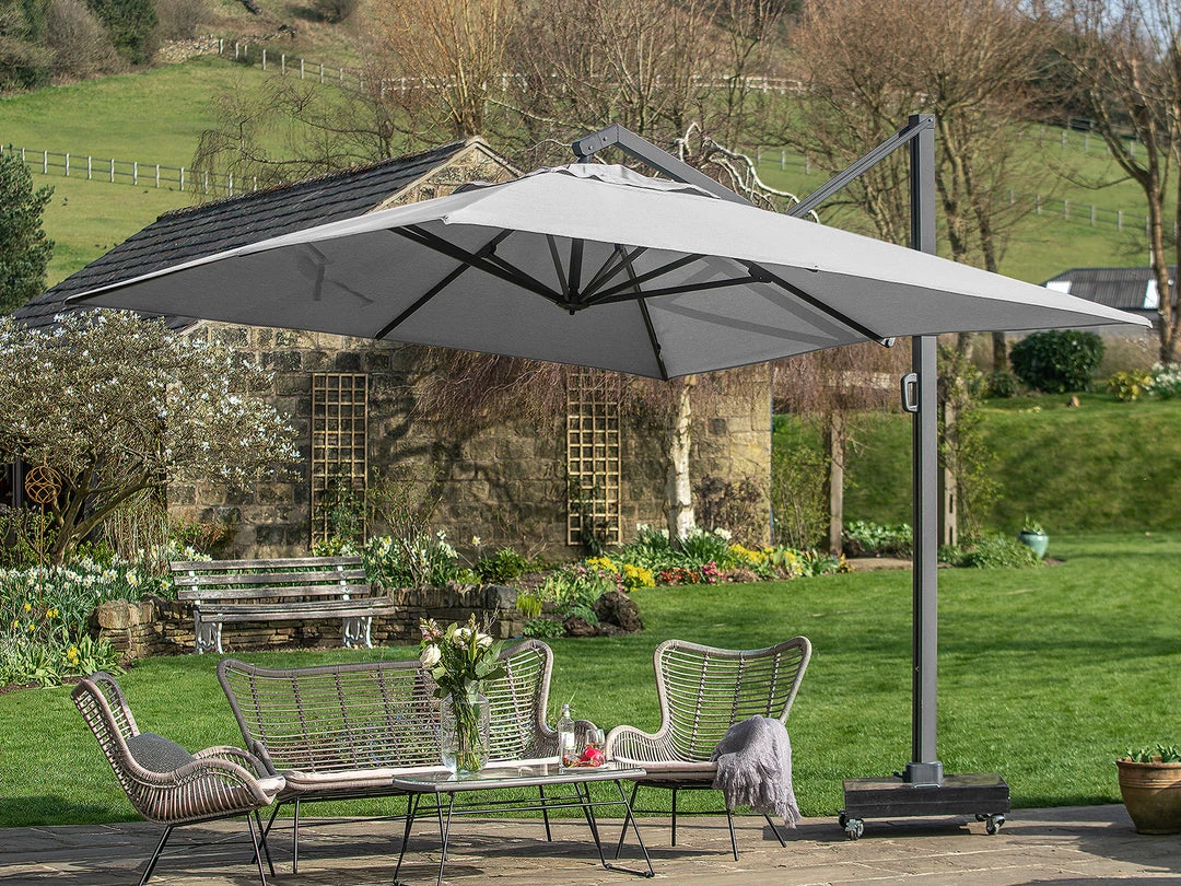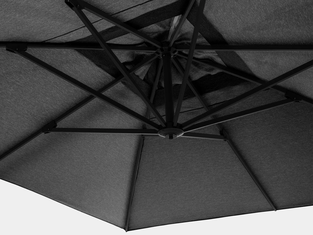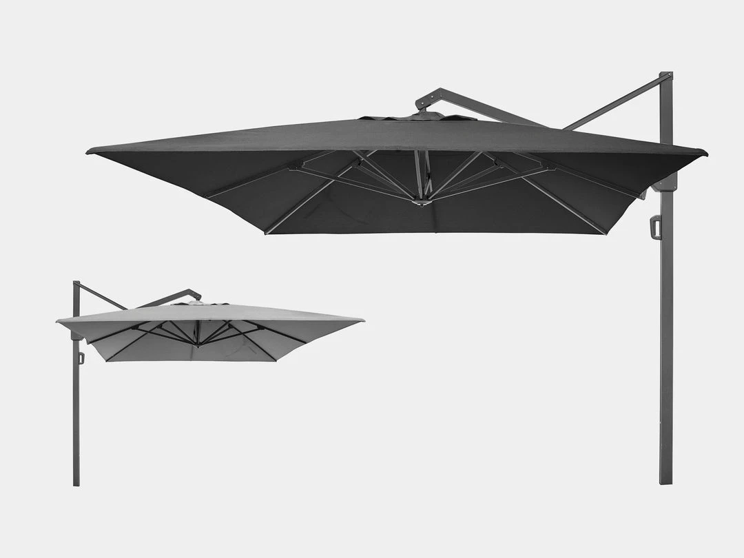The wind stabilizer, robust ribs and 78 x 78mm pole ensures this sunshade is stable in windy conditions. Made of powder-coated aluminium and fitted with 240grams Spuncrylic fabric with UPF50+, this sunshade will stand the test of time. We recommend a 150kg base