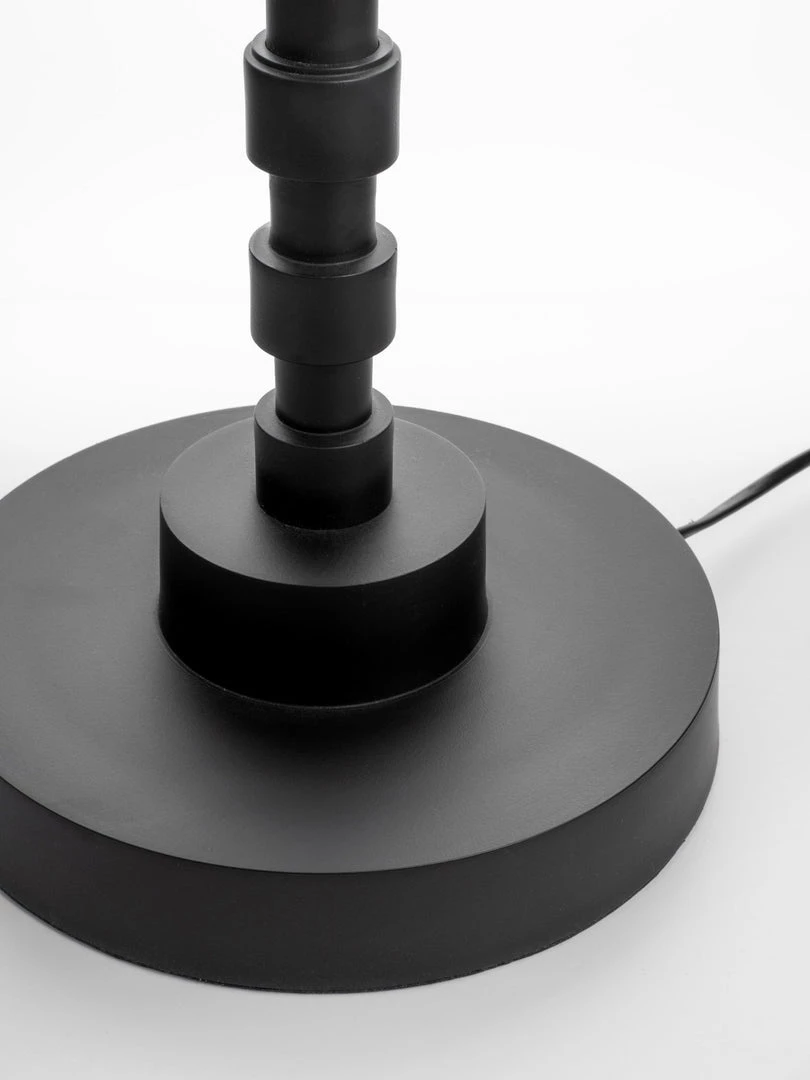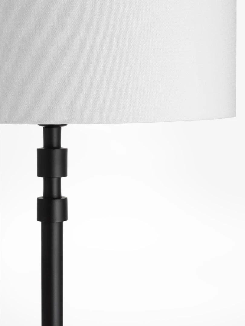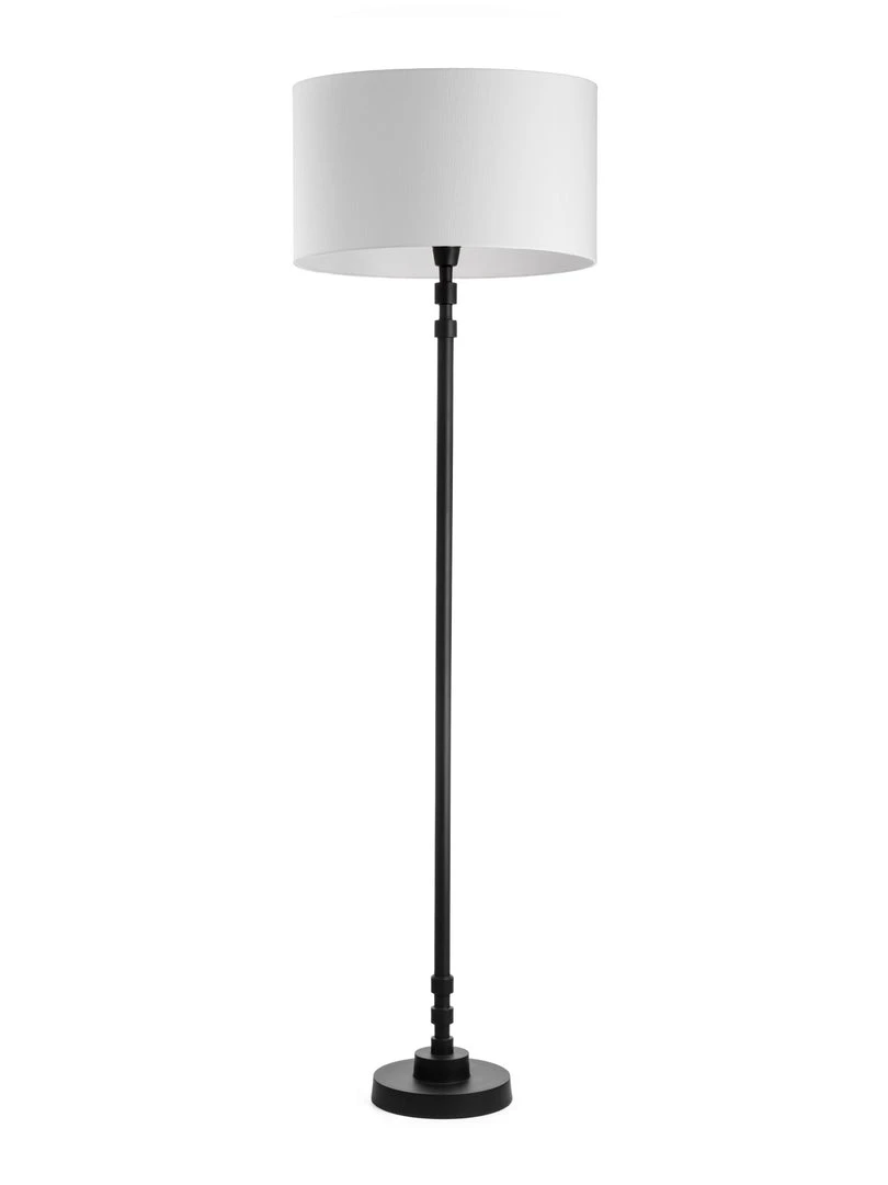 Plain matt black lamp base with a 100% linen drum shade. A simple but elegant designed floor lamp.