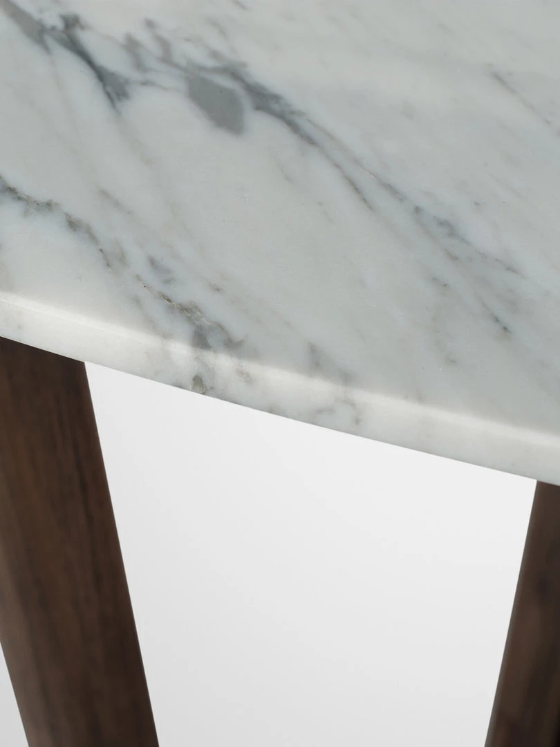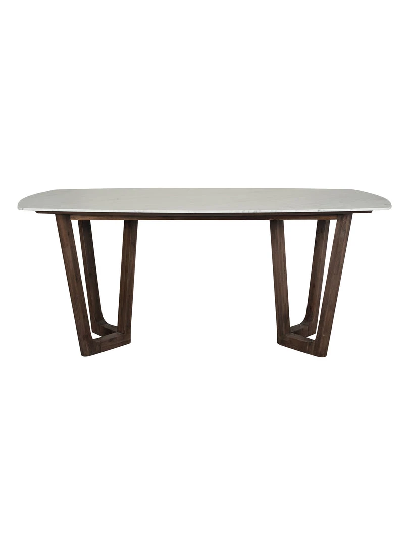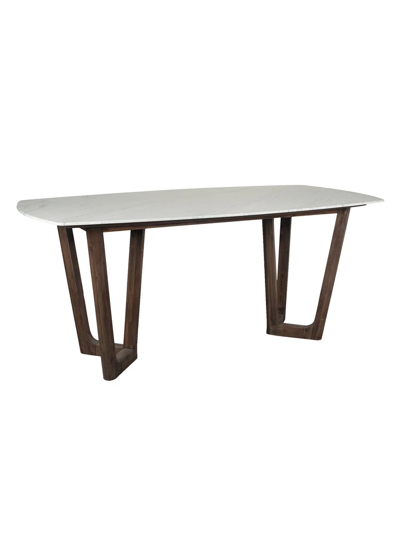 The Luno Collection includes this dining table and incorporates a striking Italian white marble top which is rounded at the edges to create an organic feel whilst the dark acacia wood architectural legs contrast with this beautifully. A statement piece for any room.