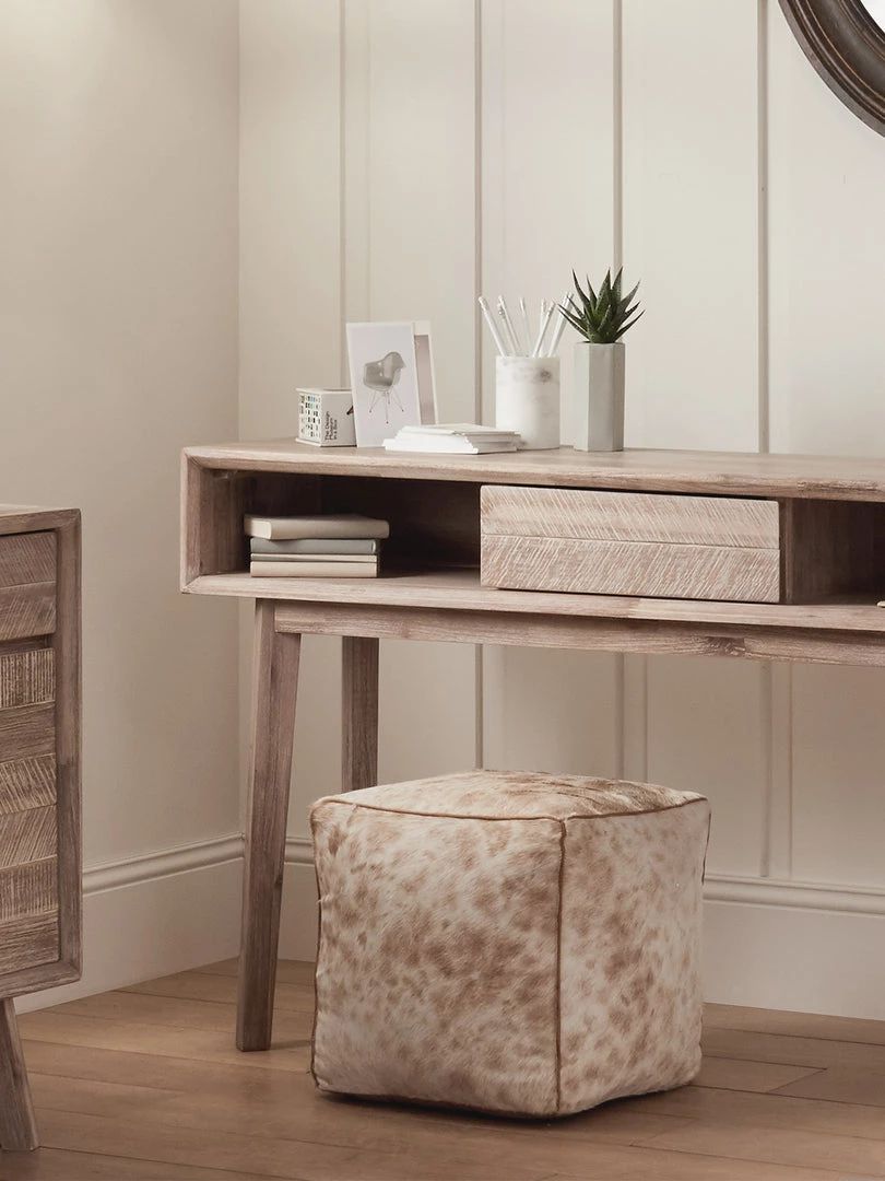 This one drawer, sand-washed acacia wooden console from the Talma Collection would rejuvenate any interior with its clean-lined and modern finish.