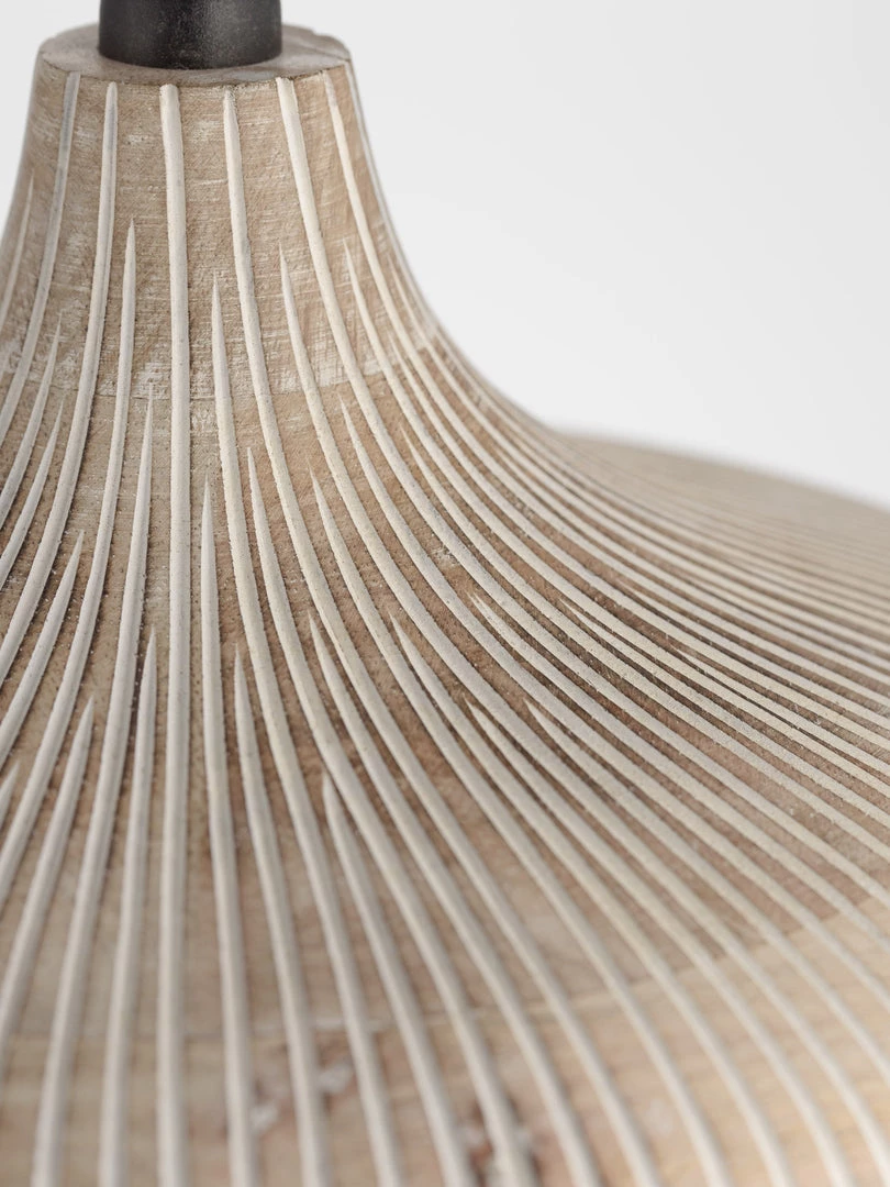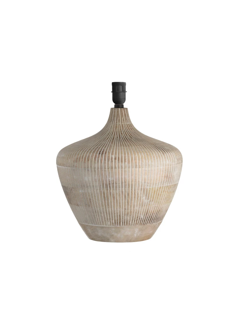 Natural and white mango wood grooved lamp base, a beautifully curved statement lamp.