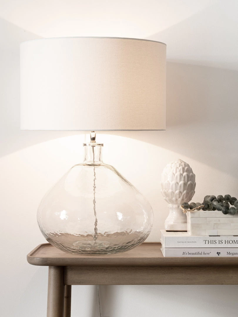 Organic tear drop glass lamp. Each one has a mottled glass finish.