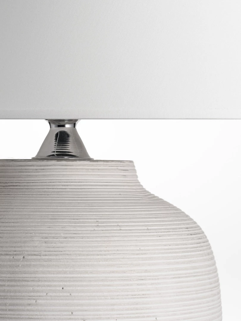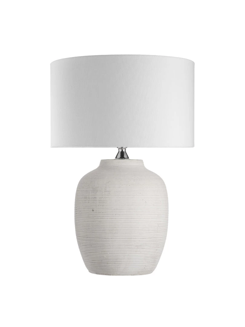 The Lisbon White Table Lamp is elegant and simple with a striking ridged design from top to bottom topped with a 30cm white cylinder shade.