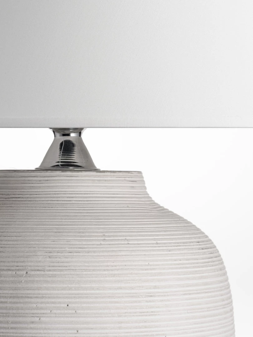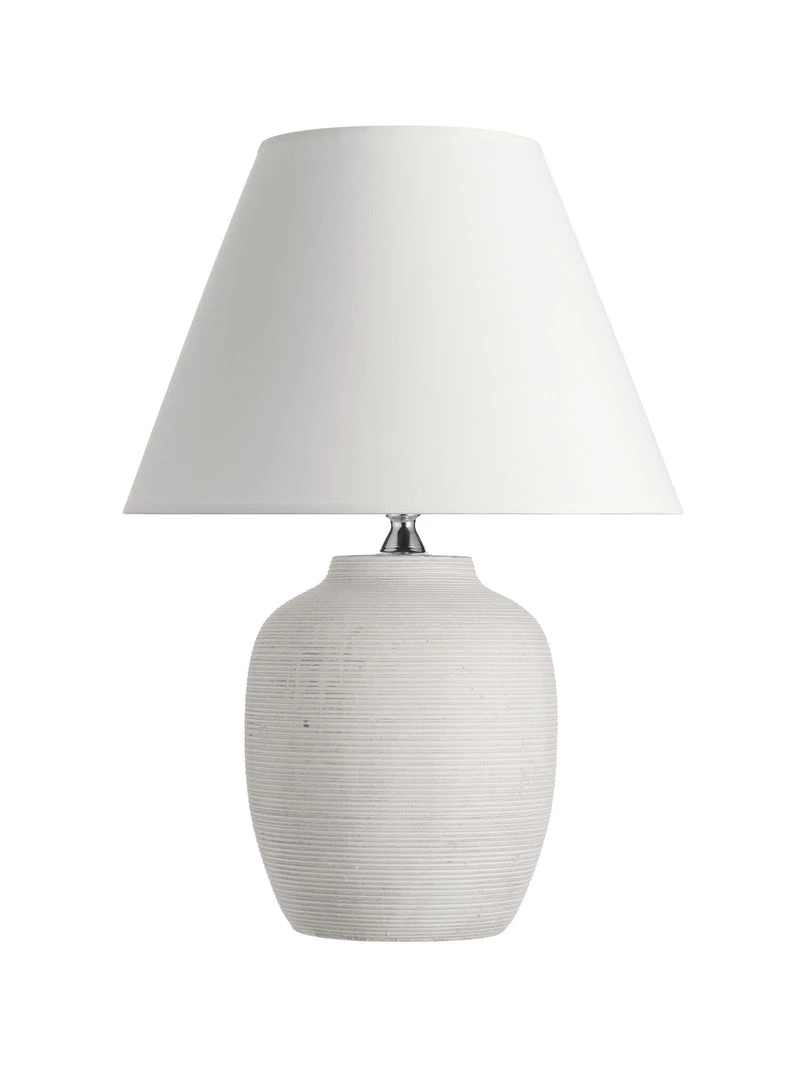 The Lisbon white Table Lamp is elegant and simple with a striking ridged design from top to bottom topped with a 40cm Empire made in the UK.