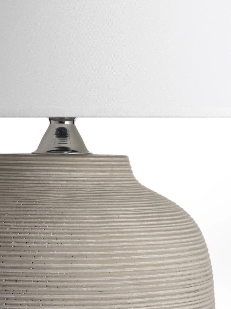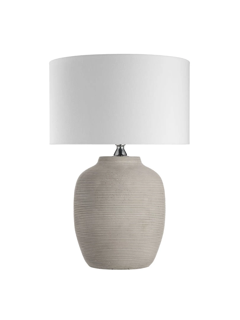 The Lisbon grey Table Lamp is elegant and simple with a striking ridged design from top to bottom topped with a 30cm white cylinder shade.
