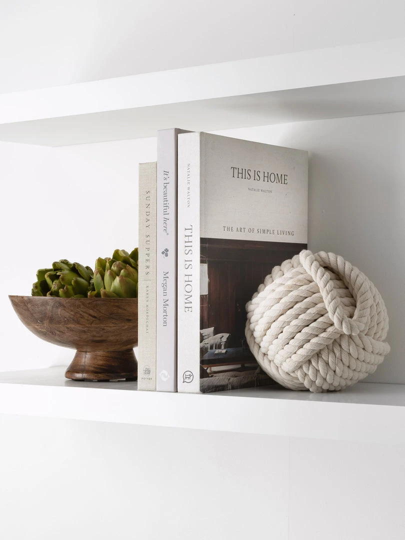 Functional as a door stopper this item is nice enough to use as a styling piece to add in some texture and interest to anywhere placed. Crafted from ivory rope.
