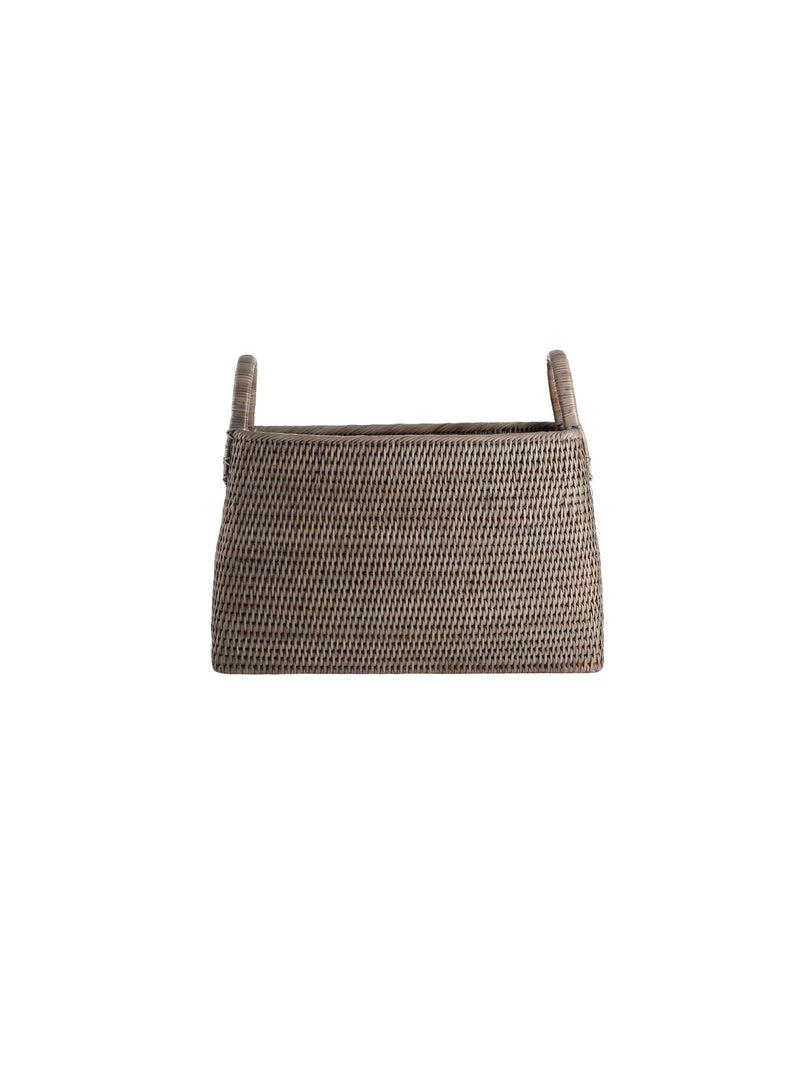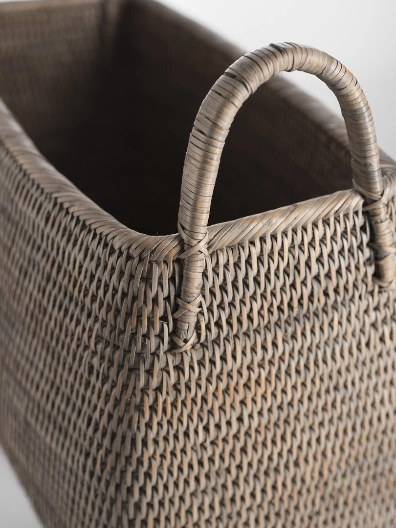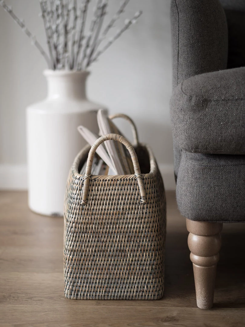 Hand made rattan magazine holder, with a subtle grey finish. This magazine rack will hold your current newspapers, magazines and coffee table books and placed beside your favourite reading chair adds texture to your room