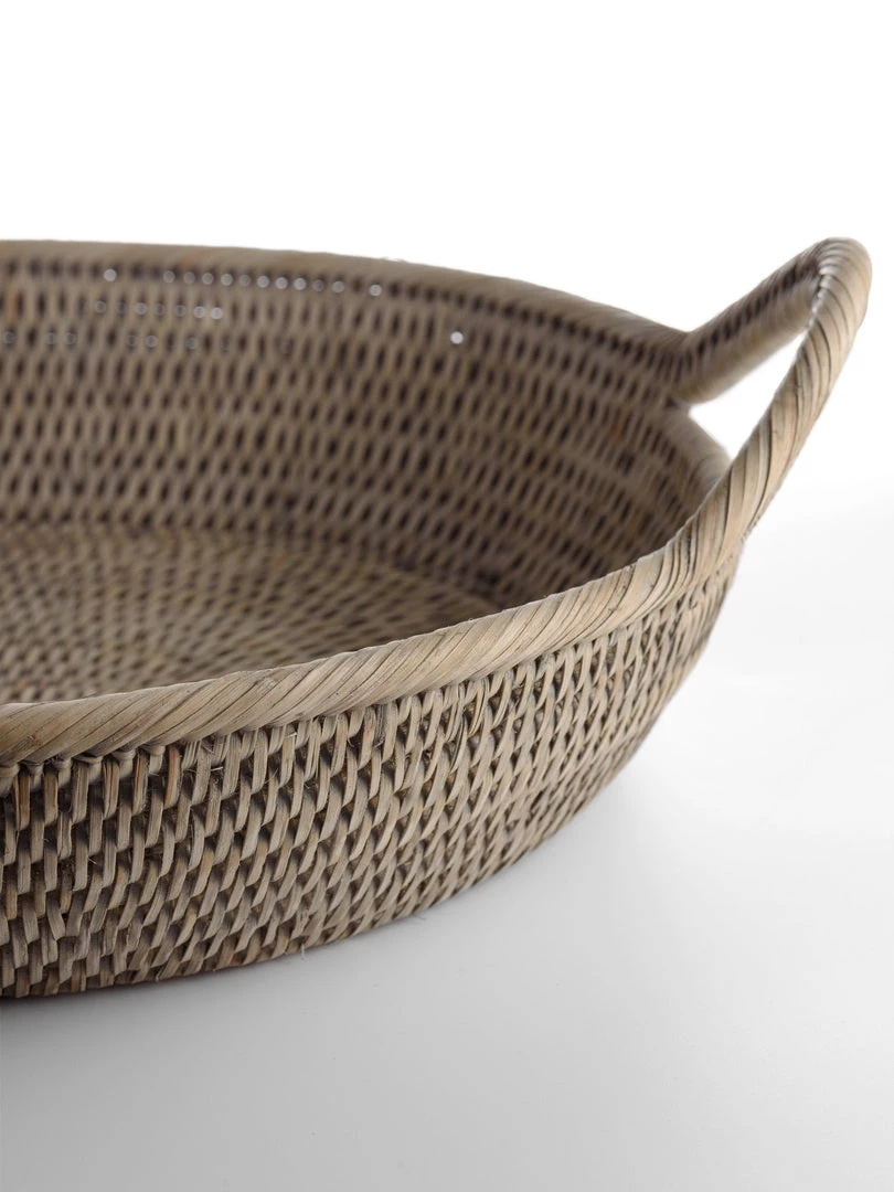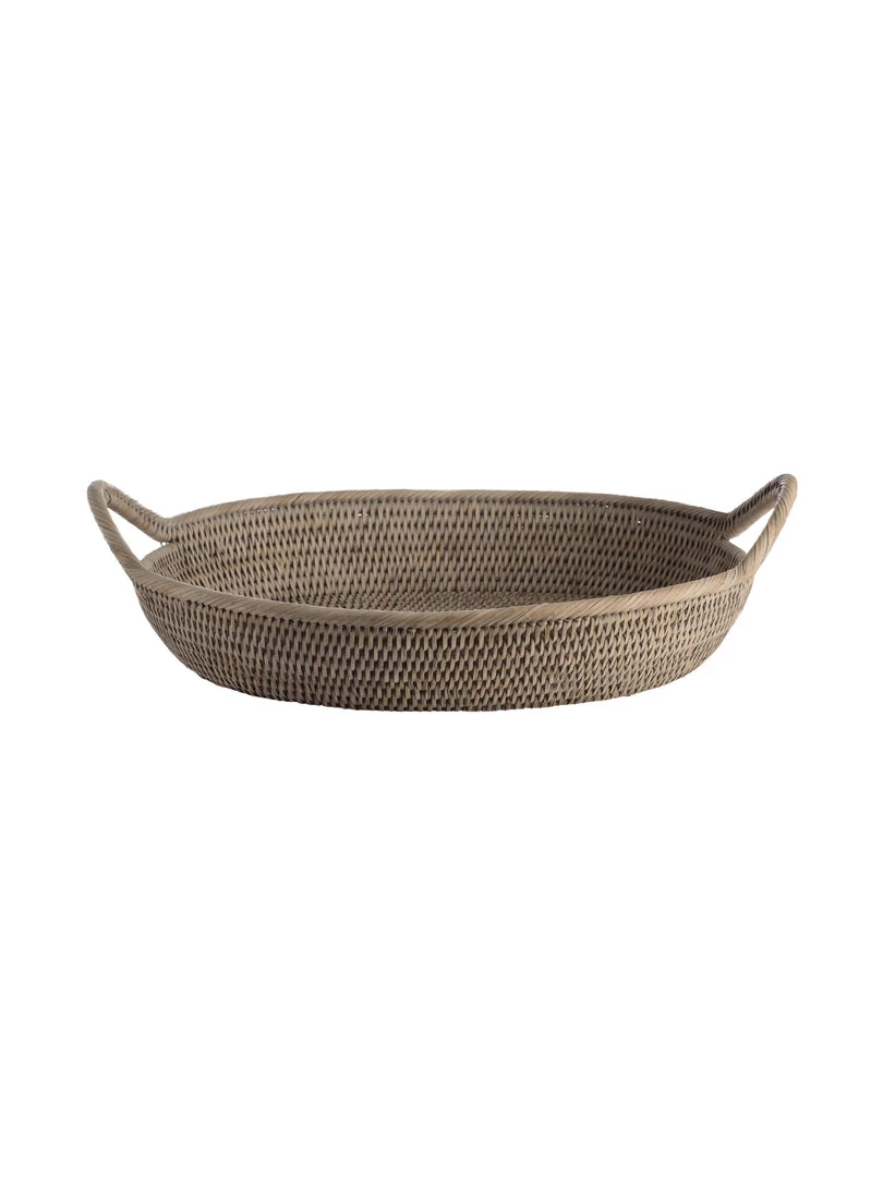 Hand made rattan large oval tray, made from natural rattan with a subtle grey finish.