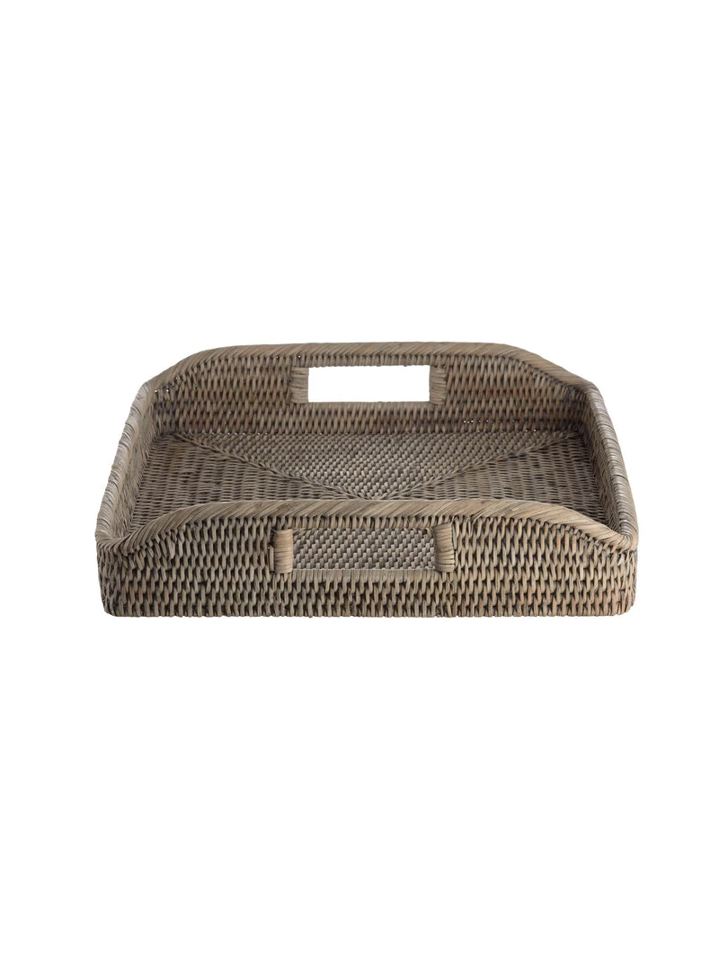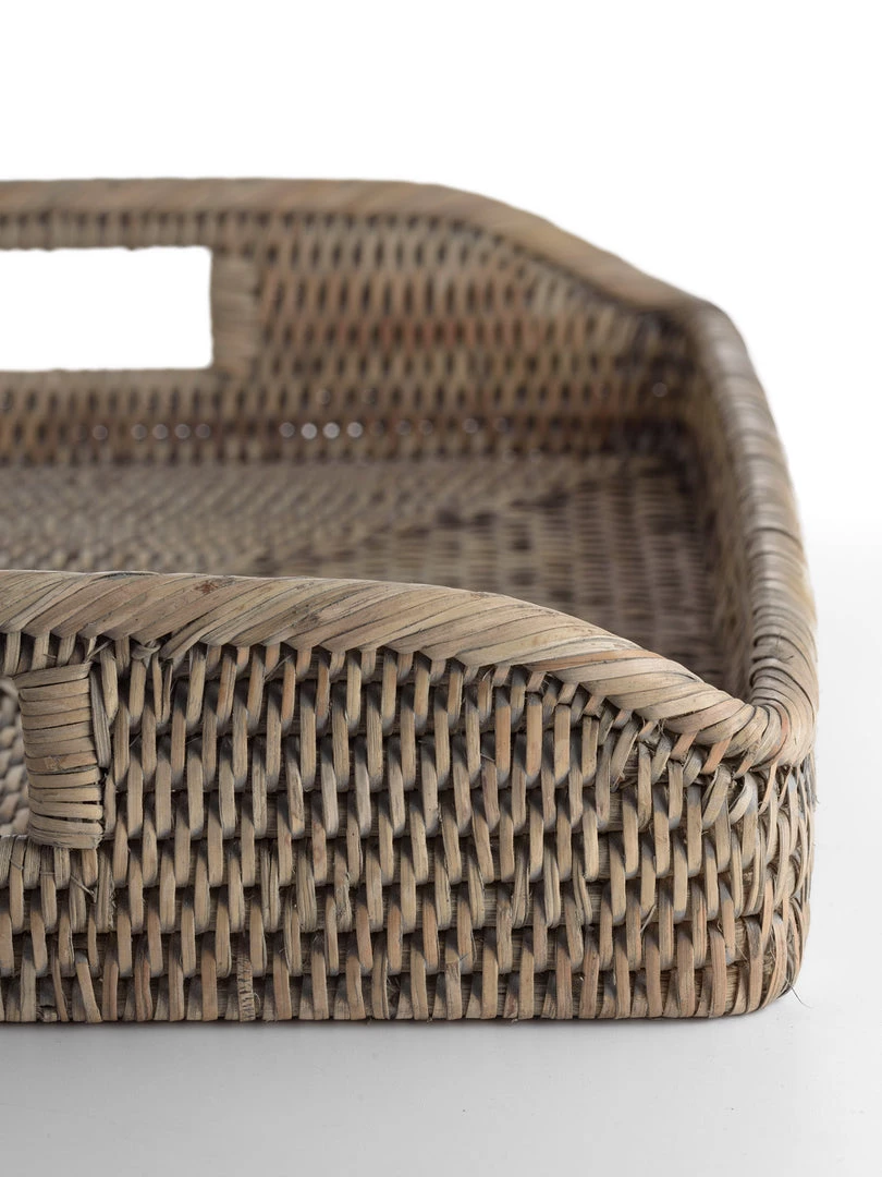 Hand made rattan square tray, made from natural rattan with a subtle grey finish.