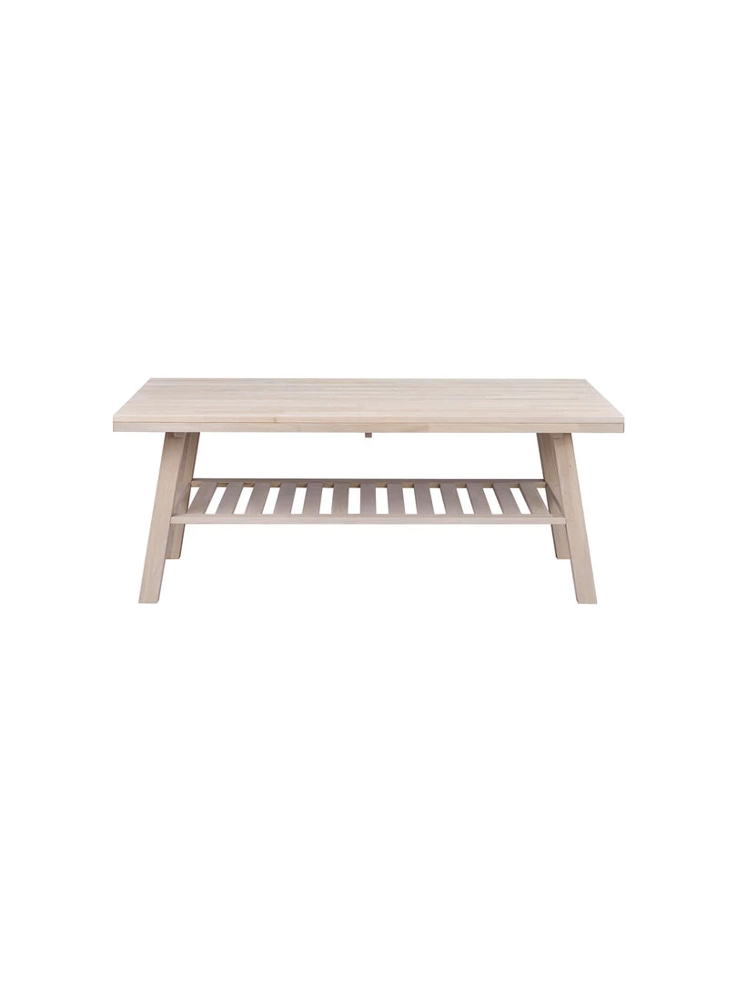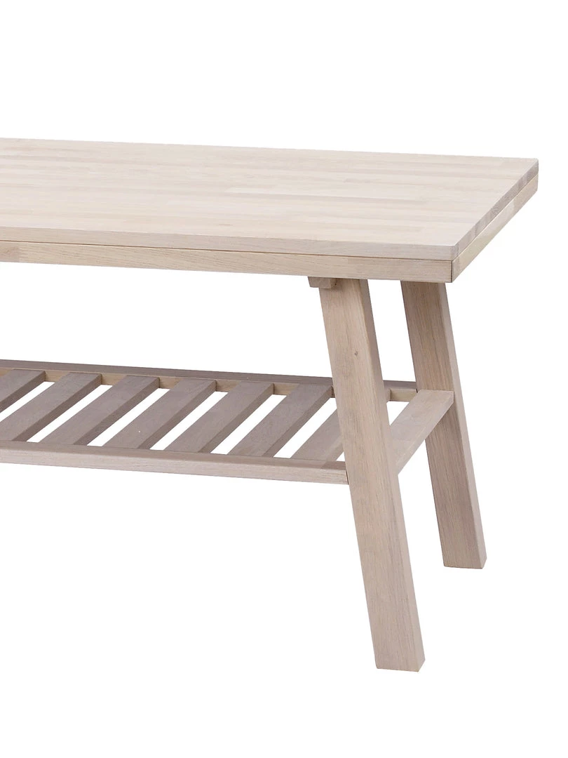 A finger-jointed solid oak coffee table with a magazine, book rack underneath.