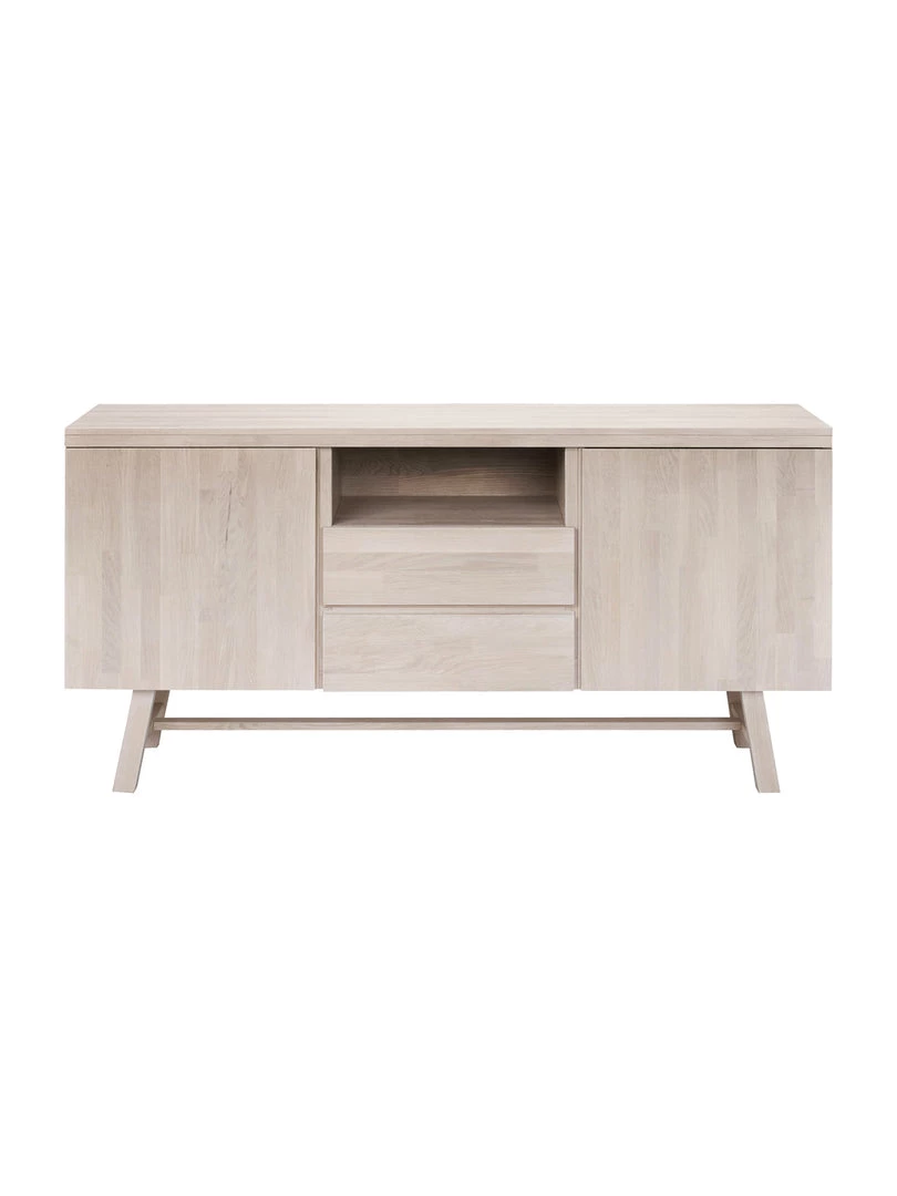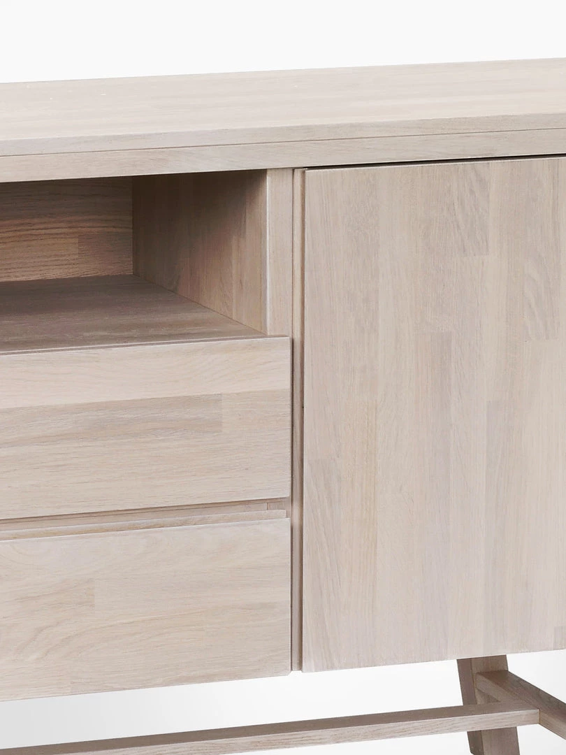 Sideboard in finger-jointed solid oak, with soft close drawers and doors.