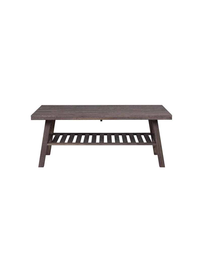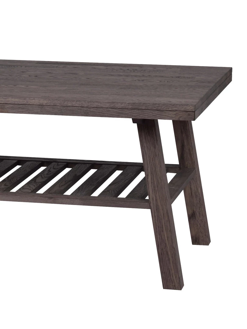 A finger-jointed solid oak coffee table with a magazine, book rack underneath.